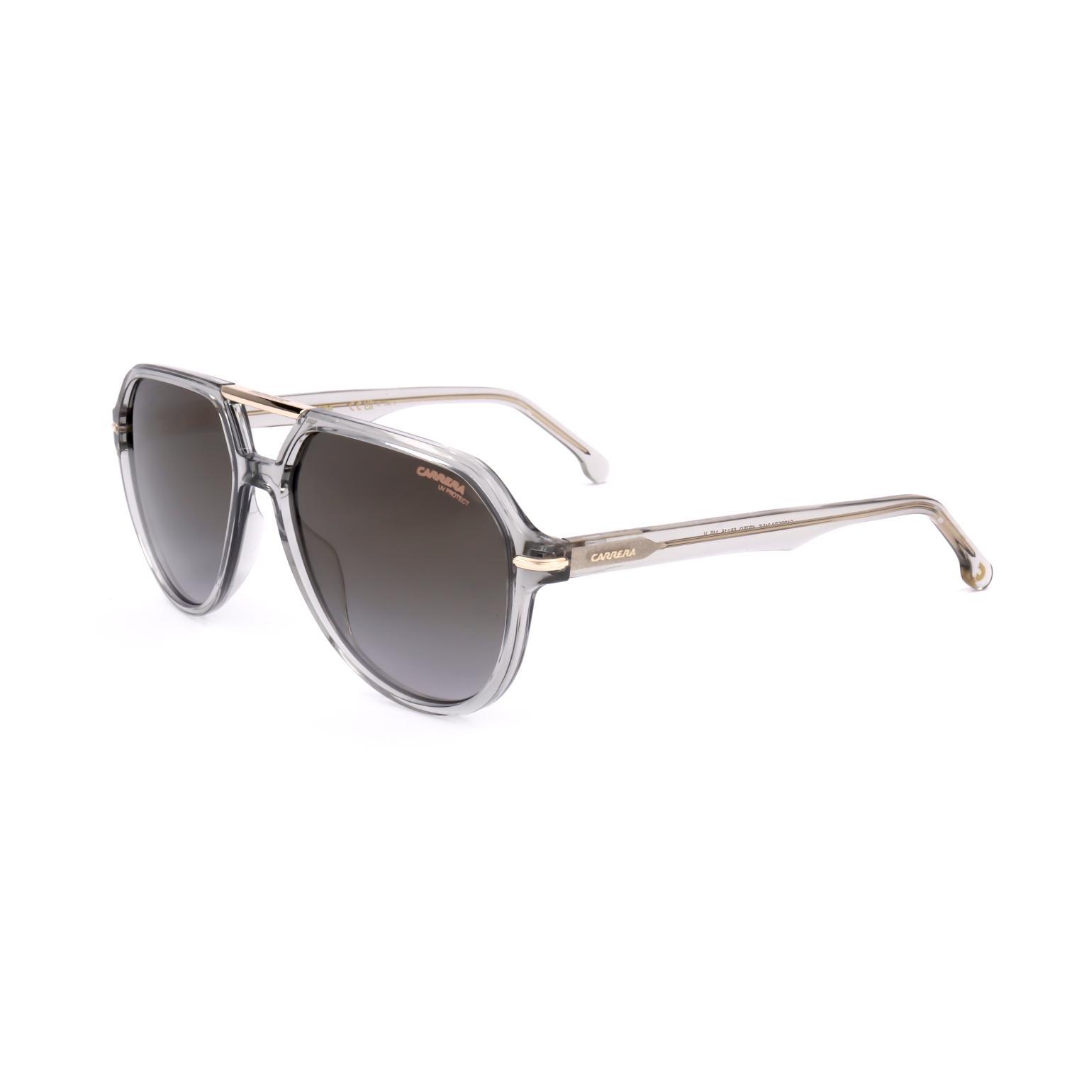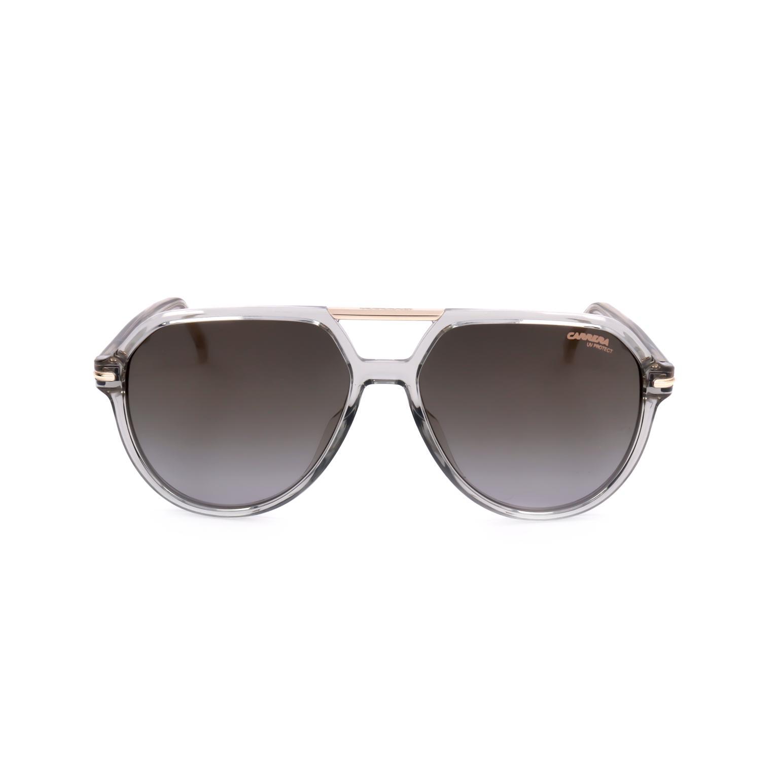 Męskie okulary przeciwsłoneczne CARRERA wyróżniają się przejrzystą oprawką i unikalnym podwójnym mostkiem, który nadaje im wyrazistego charakteru. Kształt soczewek, lekko kanciasty, odświeża klasyczny styl, a ich gradalny efekt tworzy subtelne przejście optyczne. Logo marki dyskretnie zdobi soczewkę.