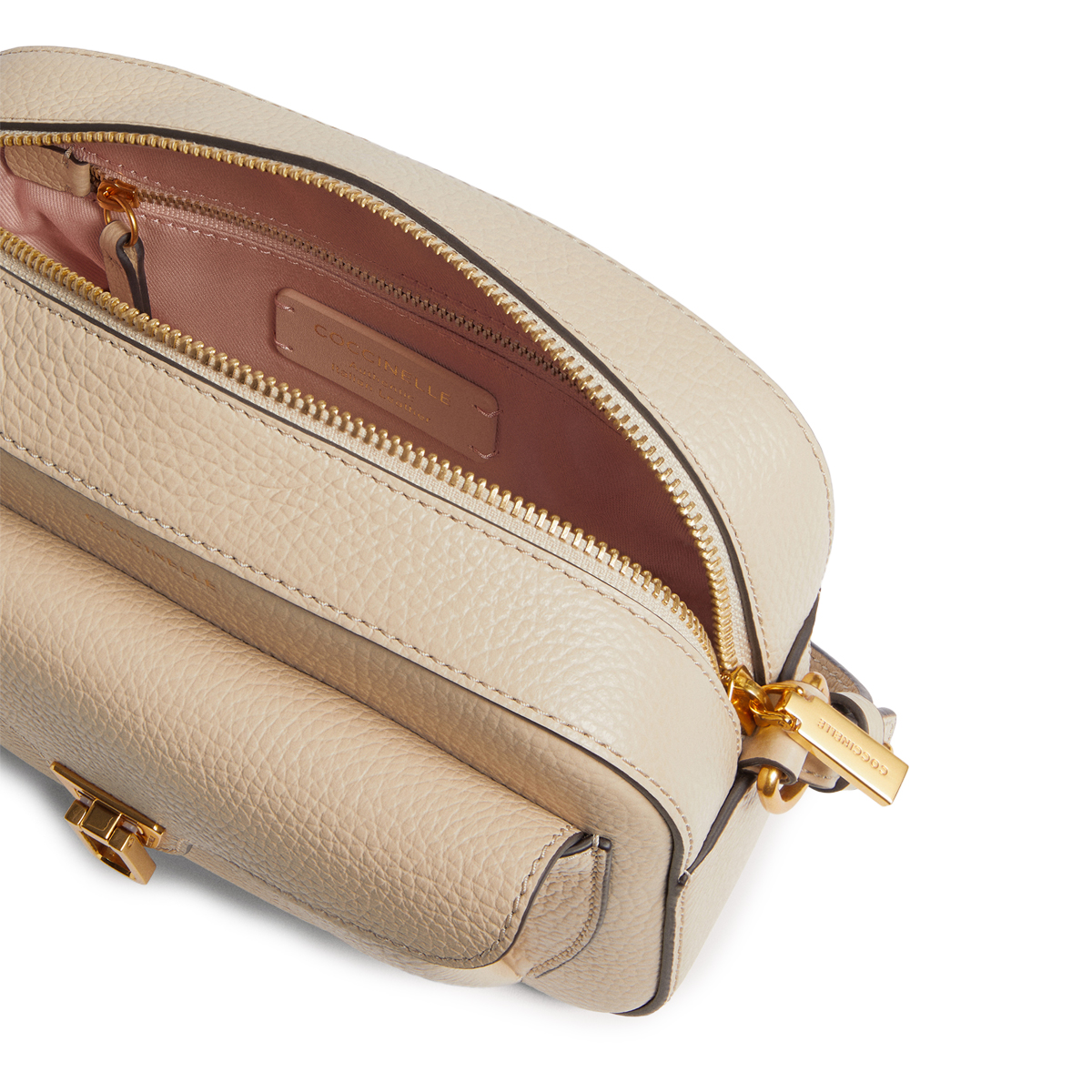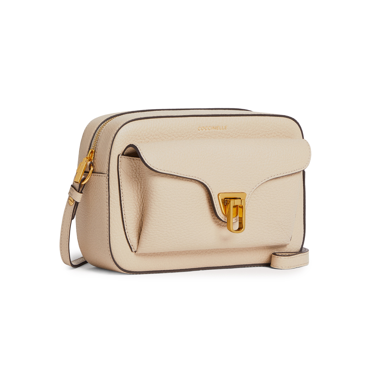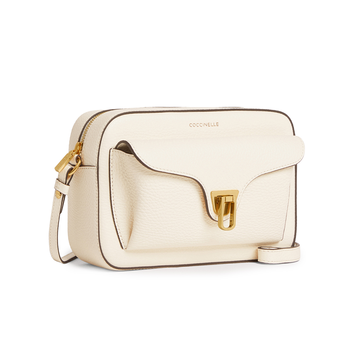 Ta torba na ramię COCCINELLE BEAT SOFT marki COCCINELLE jest wyrazem nowoczesnej elegancji opartej na czystości formy. Charakterystycznym elementem jest przednia kieszeń z metalowym zapięciem w kształcie plektronu, który nadaje całości unikalny charakter. Konstrukcja o regularnych kształtach i solidny pasek zapewniają wygodę użytkowania, a górne zapięcie na zamek chroni zawartość.