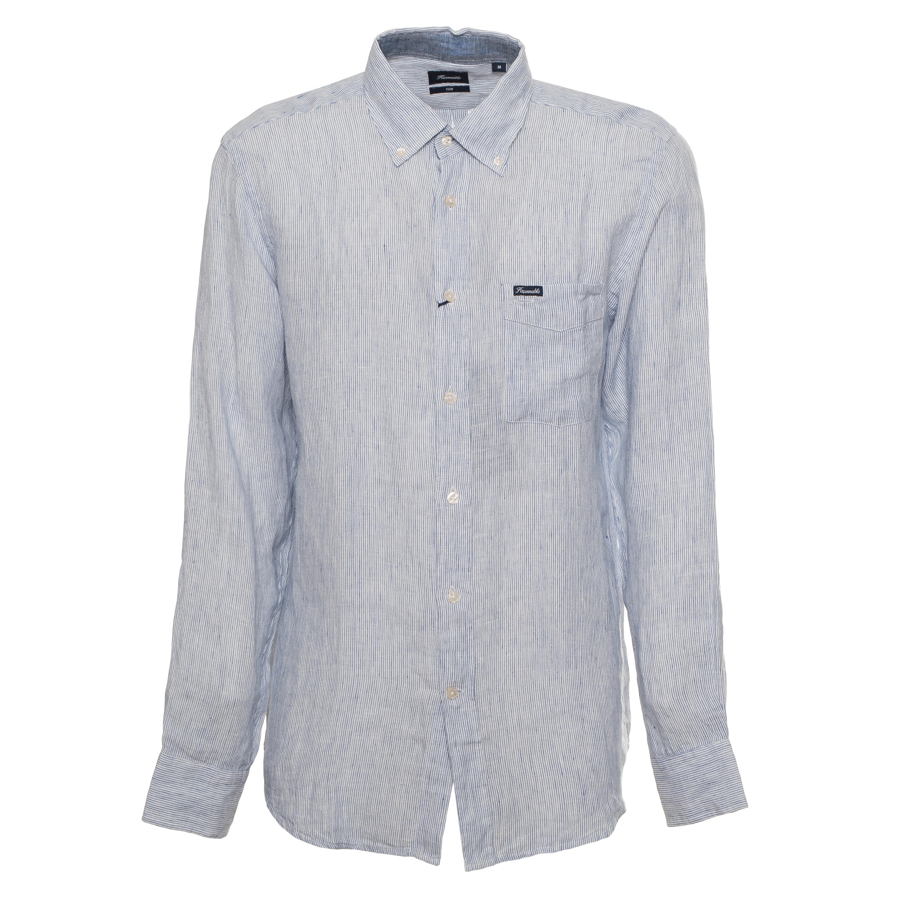 Ta CAMICIE CLUB BD SPW LINEN marki FACONNABLE to koszula z długim rękawem, która łączy tradycyjne krawiectwo z nowoczesną formą. Detale takie jak kołnierzyk typu button-down oraz naszywana kieszeń z logotypem świadczą o starannym podejściu do wykończenia każdego elementu. Pionowe, dwukolorowe pasy nadają całości wyrazisty, lecz subtelny rytm wizualny.