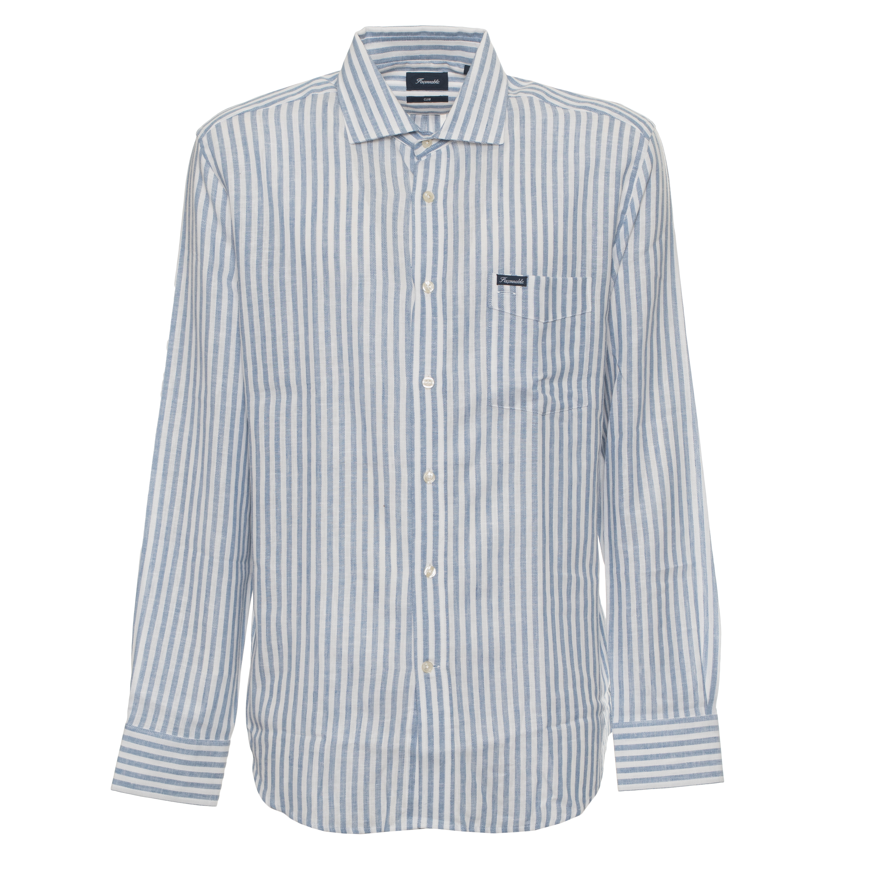STRIPED SHIRT, FOR MEN, WITH POCKET, BASIC COLLAR, LONG SLEEVES, BI-COLOR, WITH LOGO, BUTTONS CLOSURE