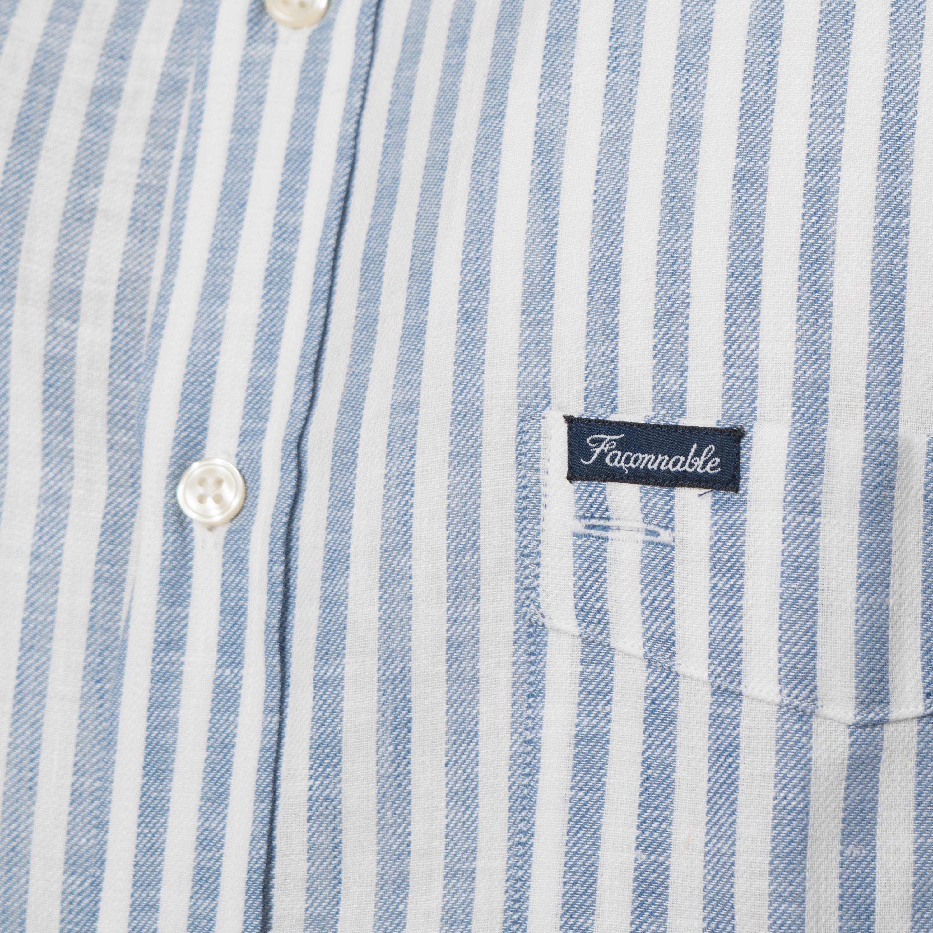 Ta koszula CLB SPRD LRG STR marki FACONNABLE emanuje spokojem dzięki klasycznemu kołnierzykowi i regularnym pionowym pasom. Kieszeń na piersi z małą naszywką z logo stanowi subtelny akcent użytkowy, a staranne przeszycia na ramionach i mankietach świadczą o rzemieślniczej precyzji. Fason zapewnia swobodę ruchów, zachowując jednocześnie elegancką formę.
