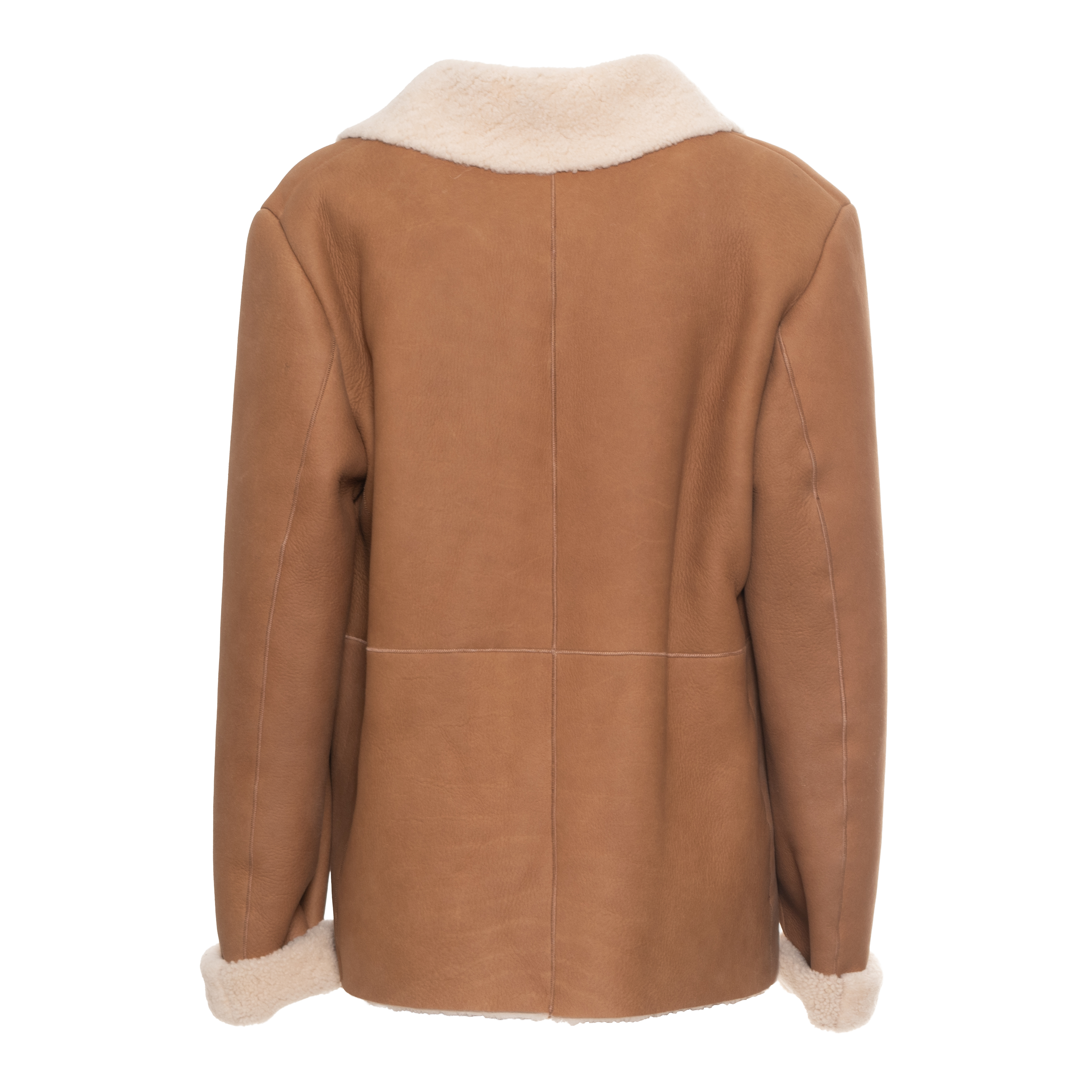 SHEARLING JACKET, FOR WOMEN, POCKETS, LONG SLEEVES, BI-COLOR, WITH LOGO, BUTTON CLOSURE