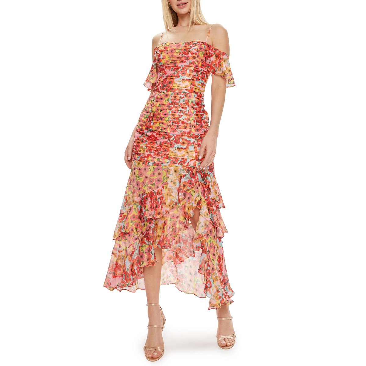 3/4 LENGHT DRESS, FOR WOMEN, ARMHOLES, FLORAL PATTERN, MULTICOLOR, ZIP CLOSURE