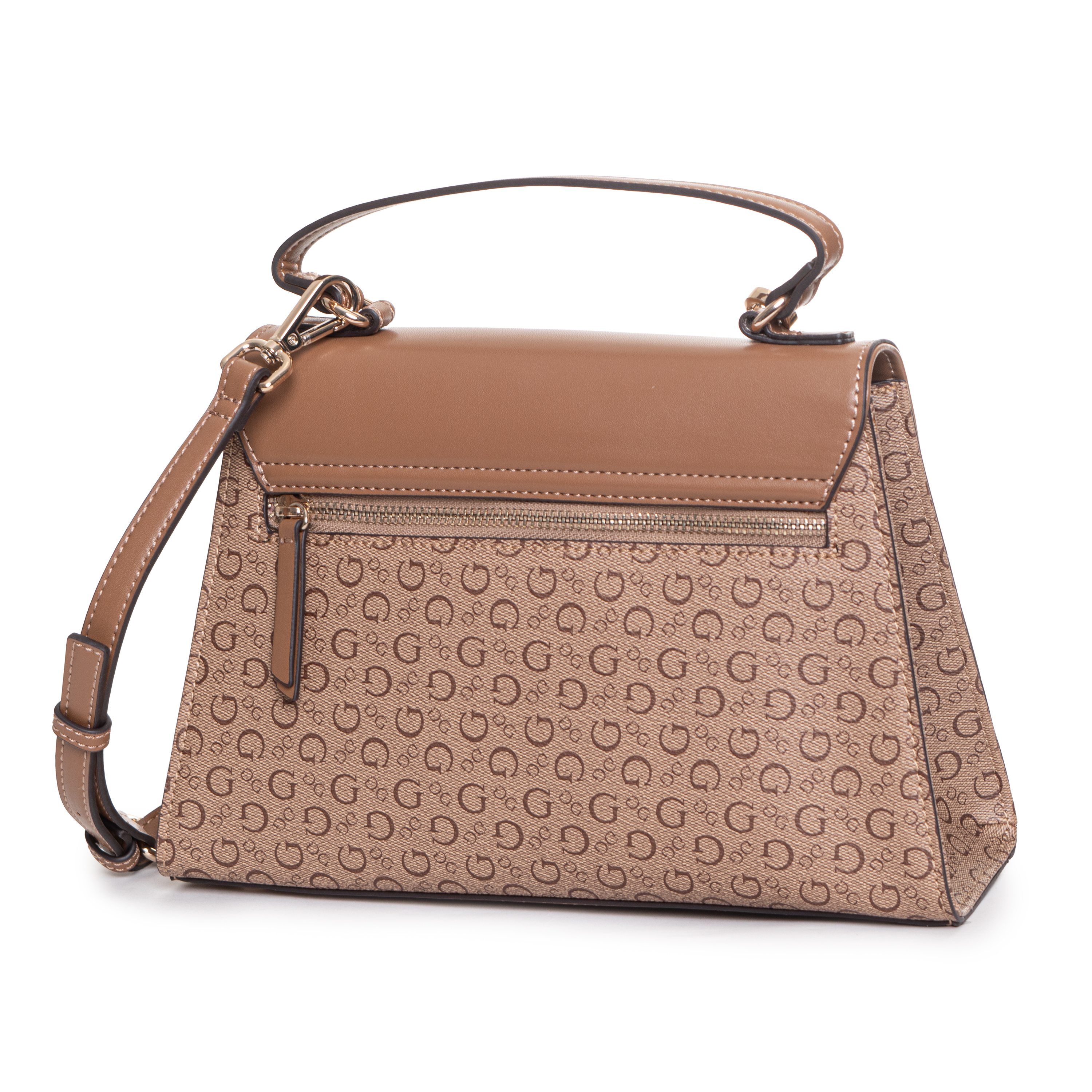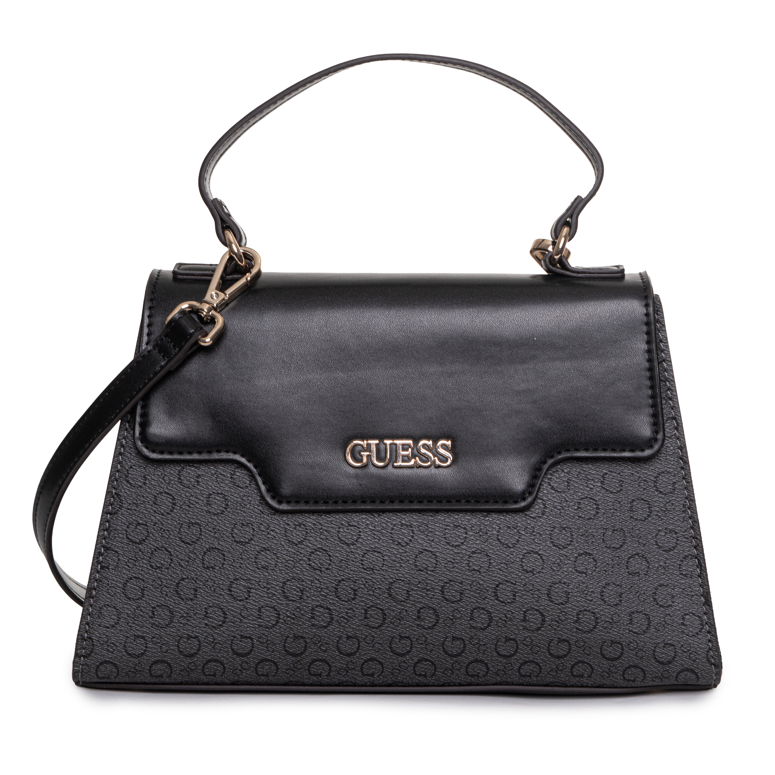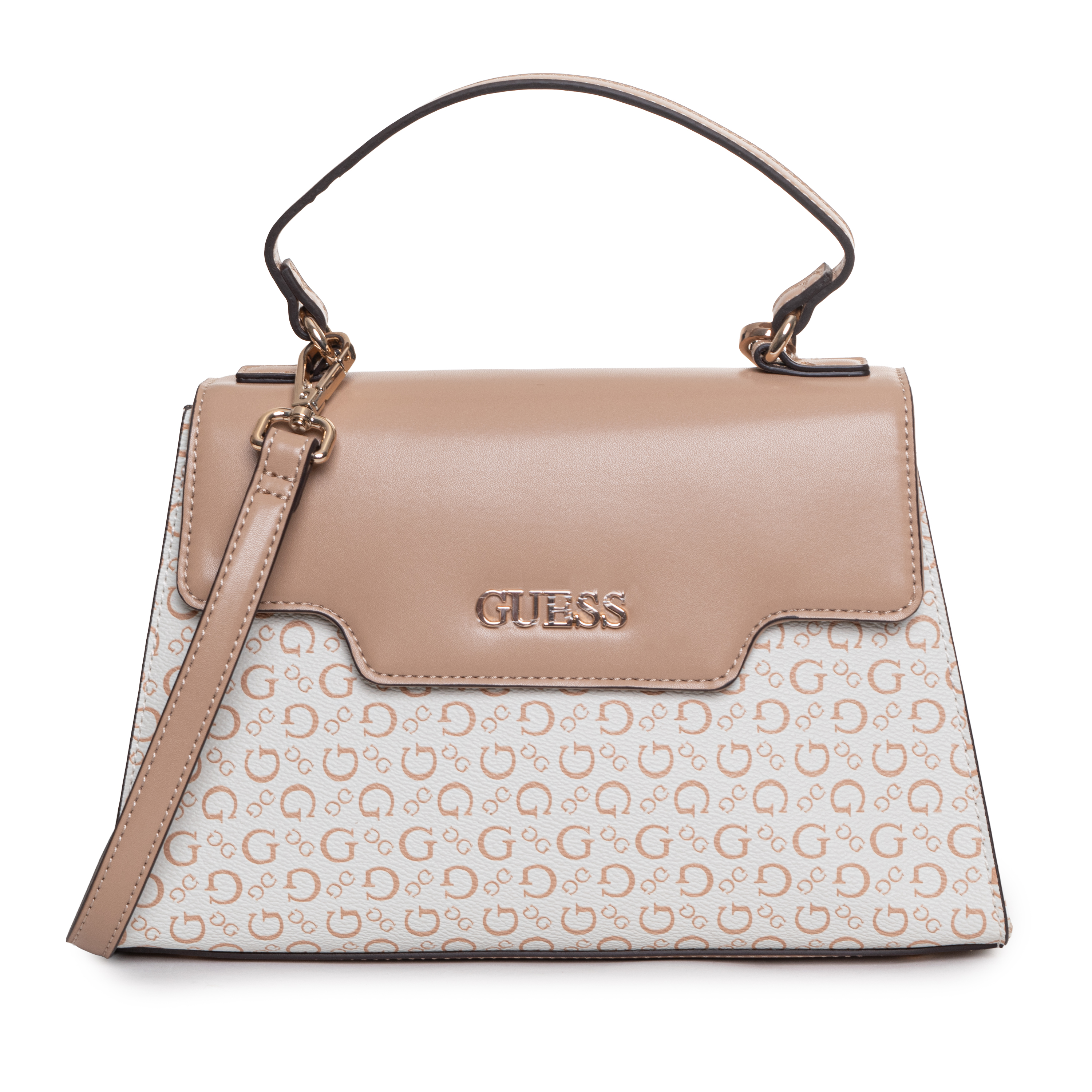 Ta torebka do ręki BETEL TOP HANDLE FLAP marki GUESS jest przykładem nowoczesnego wzornictwa opartego na wyrazistych liniach. Charakterystyczny trapezowy fason zapewnia stabilność i pojemność, podczas gdy subtelne połączenie gładkiego wykończenia z logowanym panelem dolnym nadaje jej profesjonalny wygląd. Metalowe detale, w tym wyraźne logo na froncie, podkreślają prestiżowy charakter produktu.
