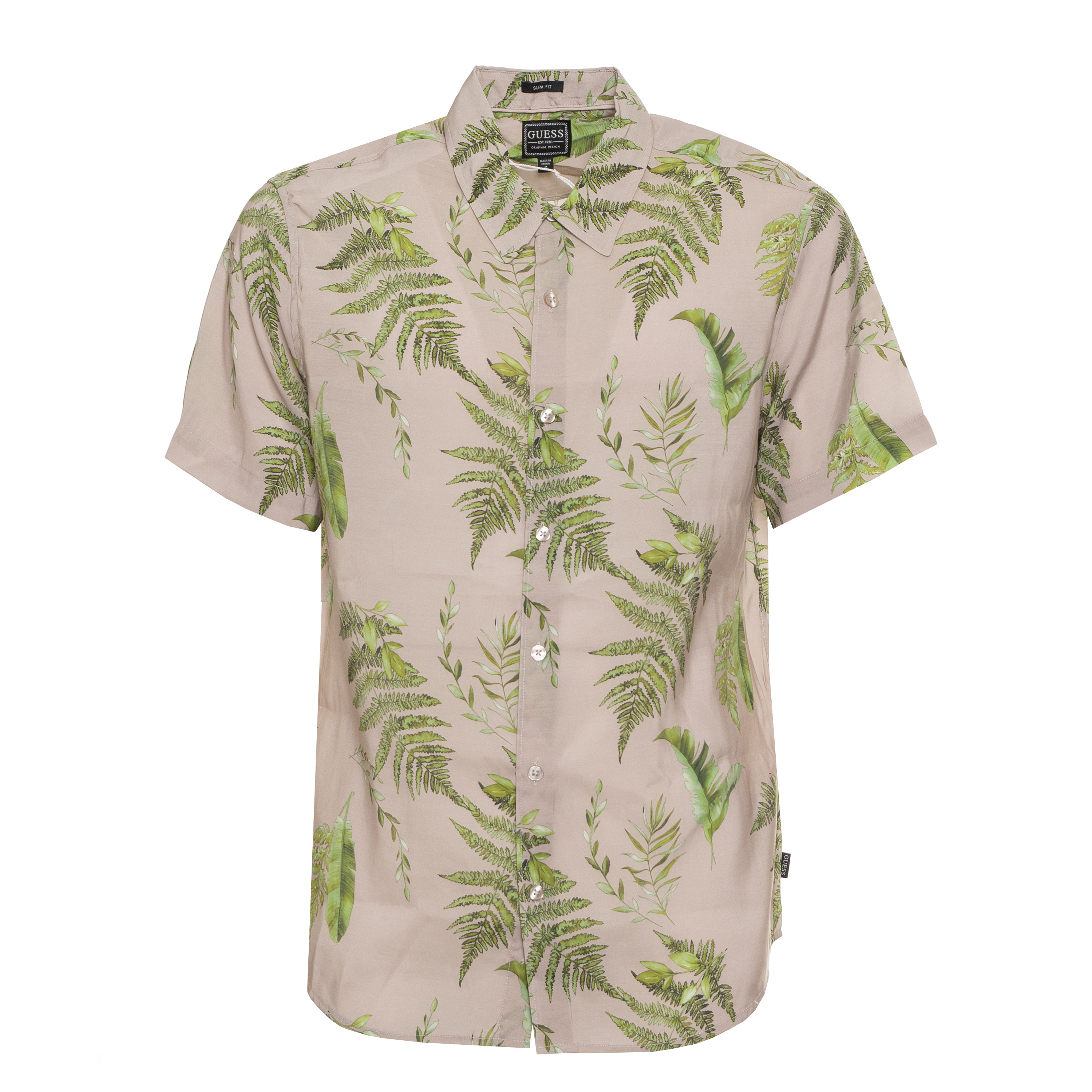 FLORAL SHIRT, FOR MEN, BASIC COLLAR, SLIM FIT, SHORT SLEEVES, FLORAL PATTERN, WITH LOGO, BUTTONS CLOSURE
