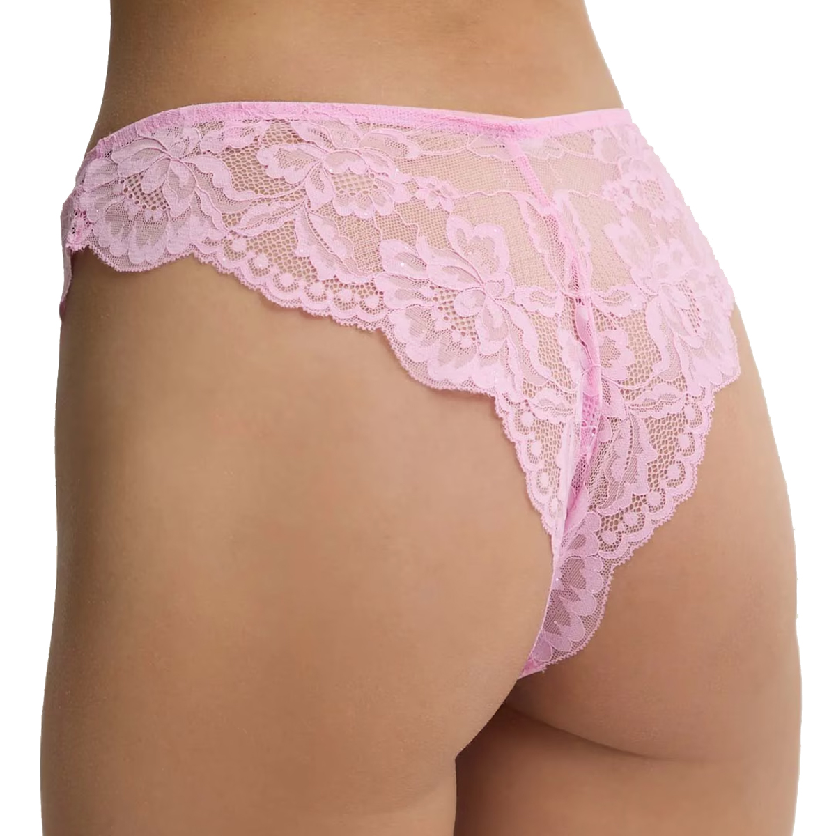 Te majtki typu slip SARA BRAZILIAN marki GUESS są wyrafynowaną propozycją bielizny, w której główną rolę gra misterna koronka o motywie roślinnym. Wysokie wycięcie optycznie wydłuża nogi, a elastyczne wykończenia brzegów sprawiają, że produkt jest niemal niewyczuwalny na skórze. Subtelna zawieszka z logo umieszczona w pasie stanowi elegancki akcent, podkreślający prestiżowy charakter marki.