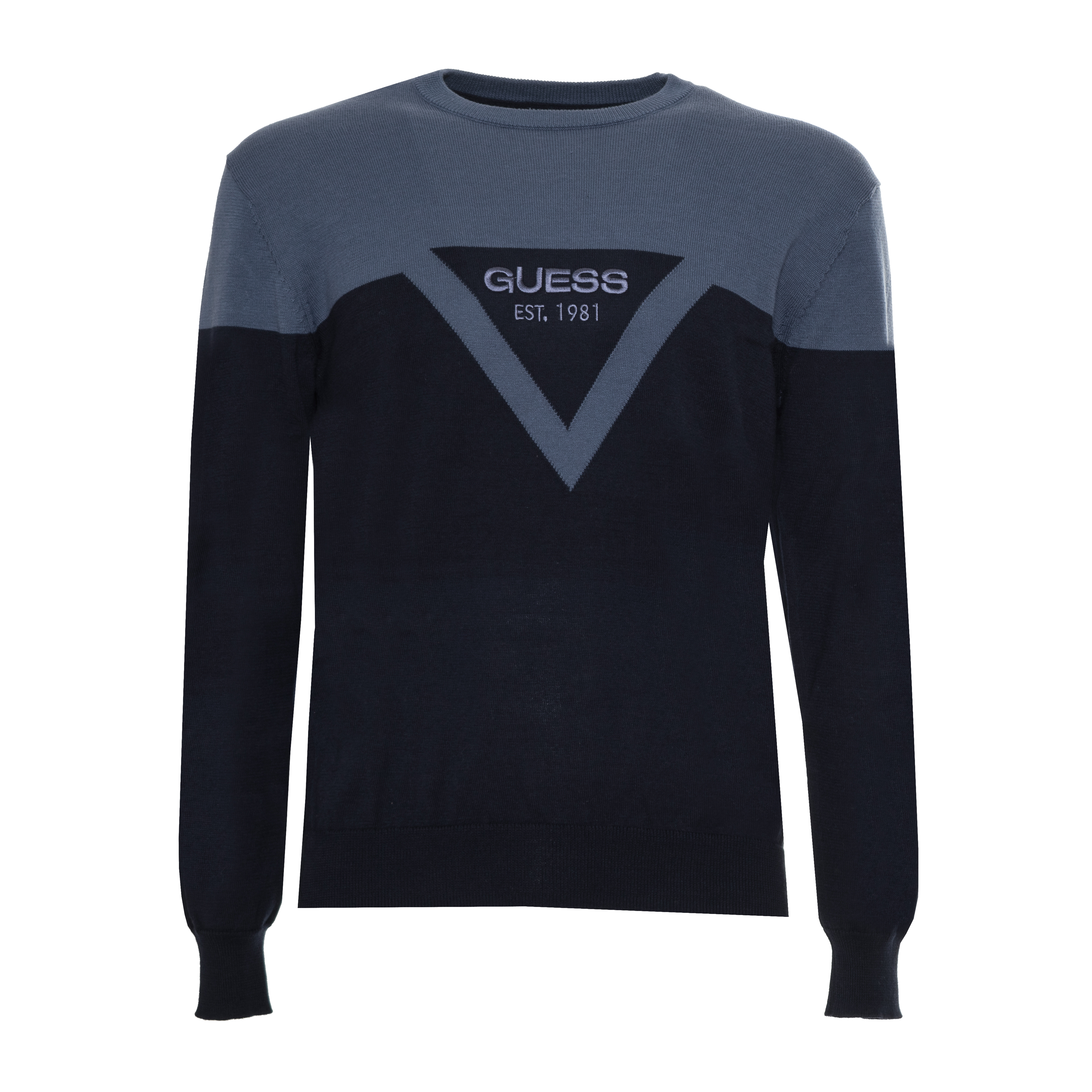 KNITWEAR, FOR MEN, ROUND NECK, LONG SLEEVES, BI-COLOR, WITH LOGO