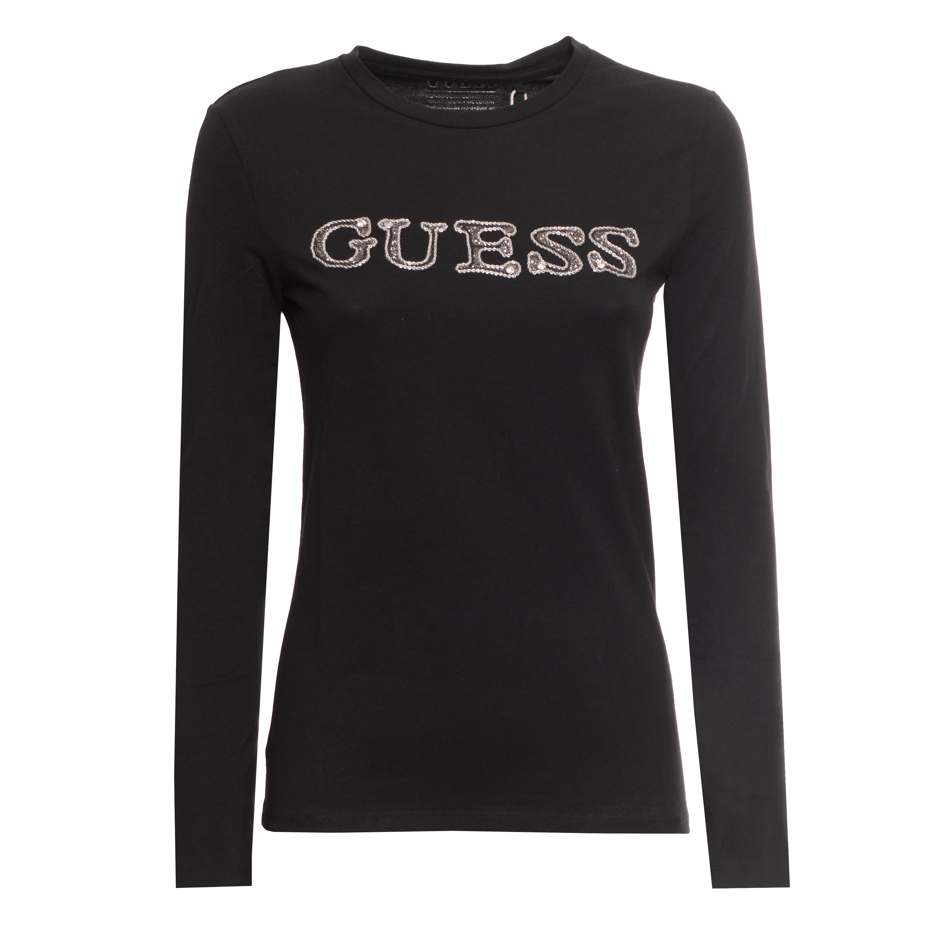 T-SHIRT, FOR WOMEN, ROUND NECK, LONG SLEEVES, SOLID COLOUR, WITH LOGO
