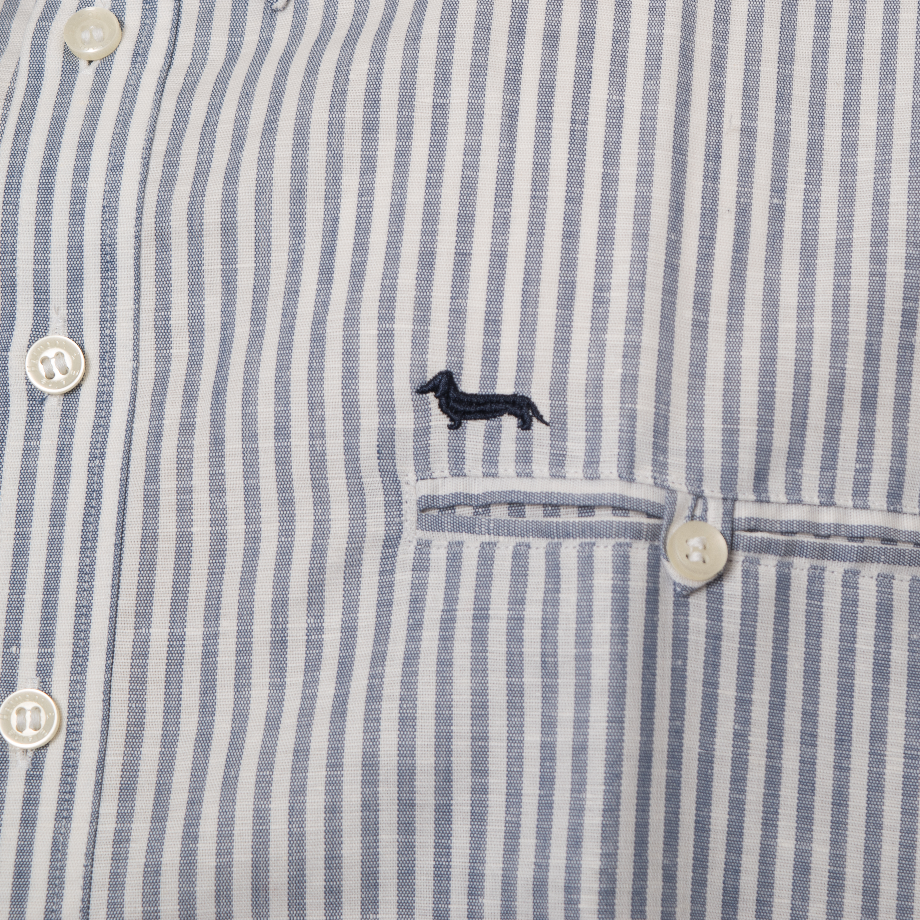 STRIPED SHIRT, FOR MEN, BASIC COLLAR, LONG SLEEVES, EMBROIDERED LOGO