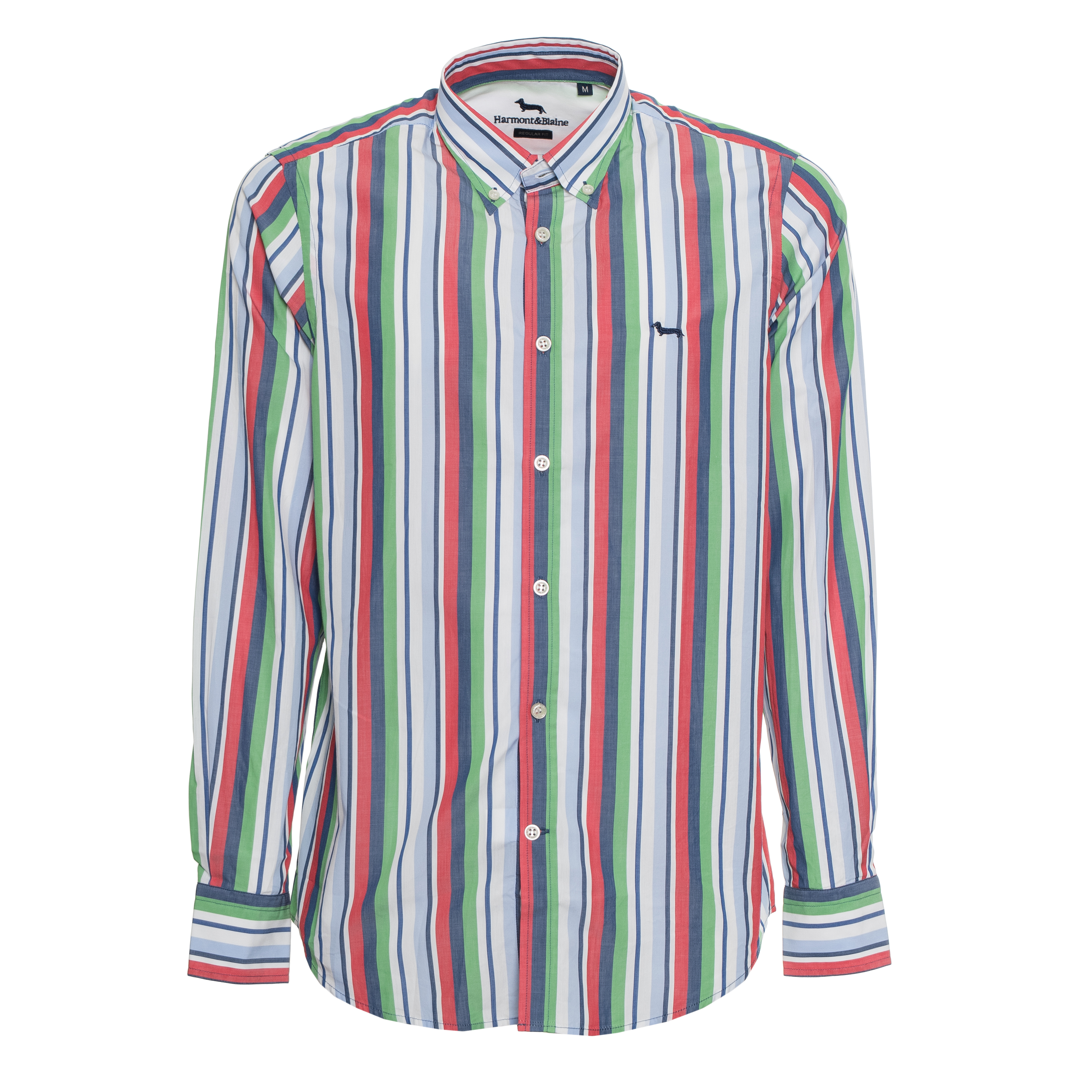 STRIPED SHIRT, FOR MEN, BUTTON DOWN, REGULAR FIT, LONG SLEEVES, MULTICOLOR, EMBROIDERED LOGO, BUTTONS CLOSURE