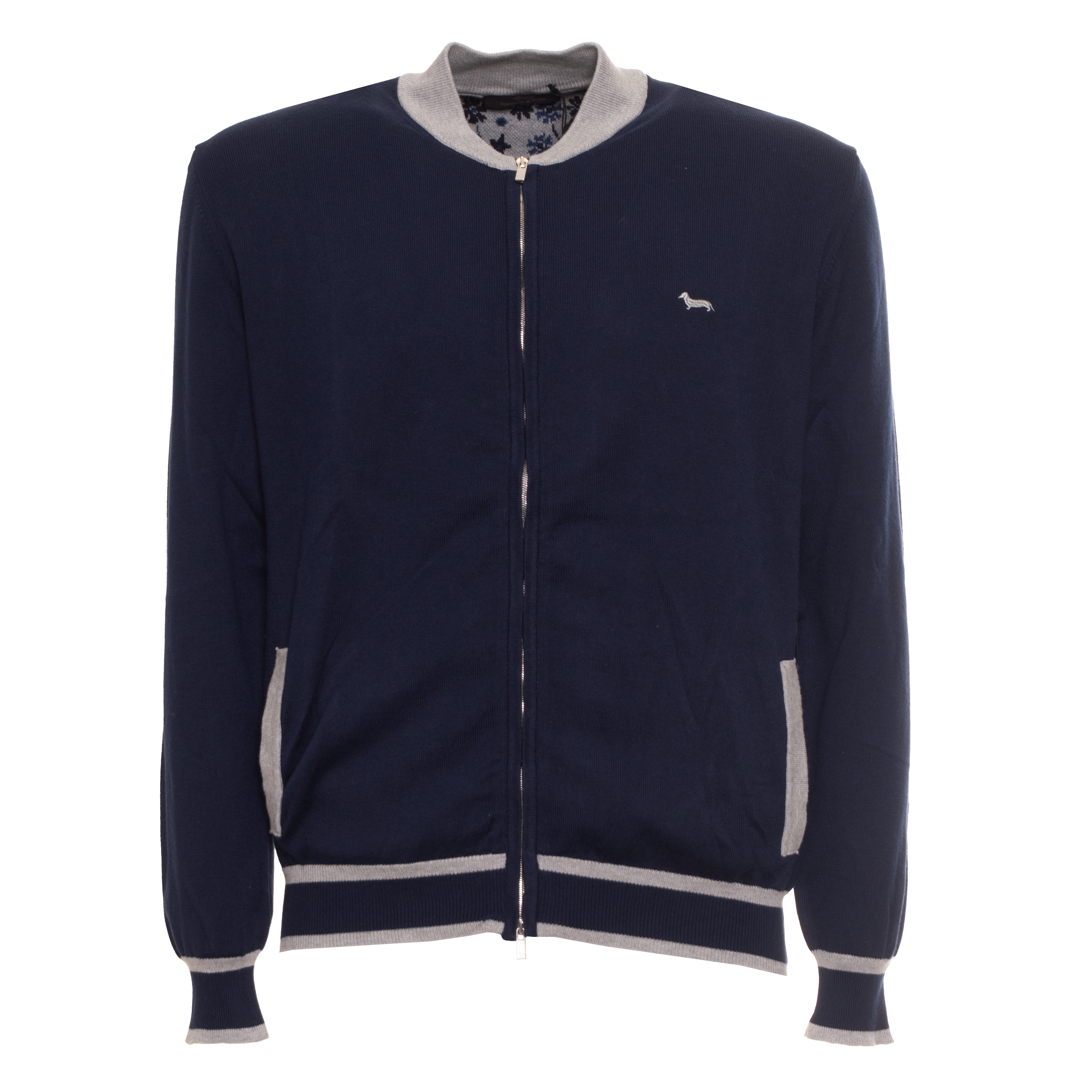 CARDIGAN, FOR MEN, LONG SLEEVES, BI-COLOR, EMBROIDERED LOGO, ZIP CLOSURE