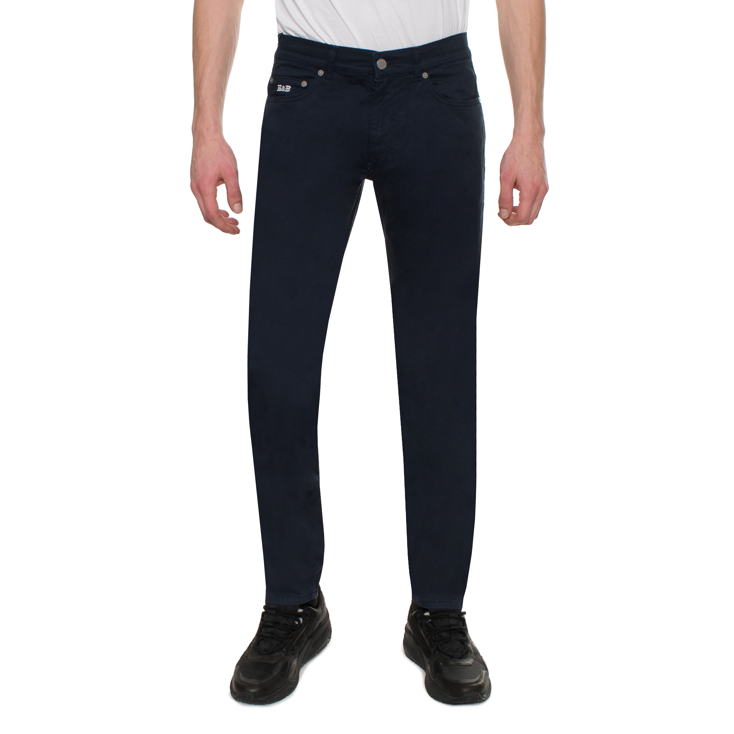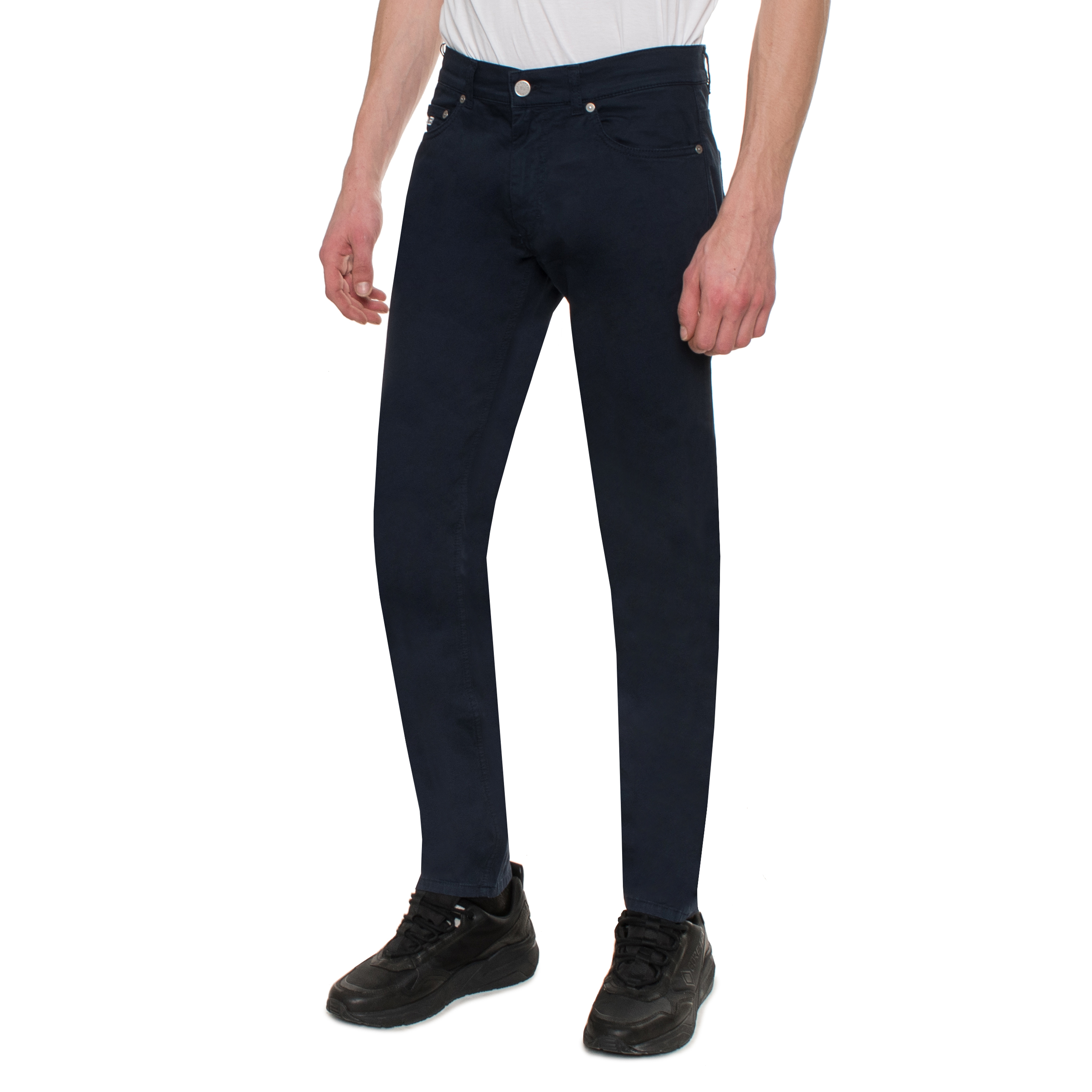TROUSERS, FOR MEN, FIVE POCKETS, NARROW FIT, SOLID COLOUR, WITH LOGO, ZIP AND BUTTON CLOSURE
