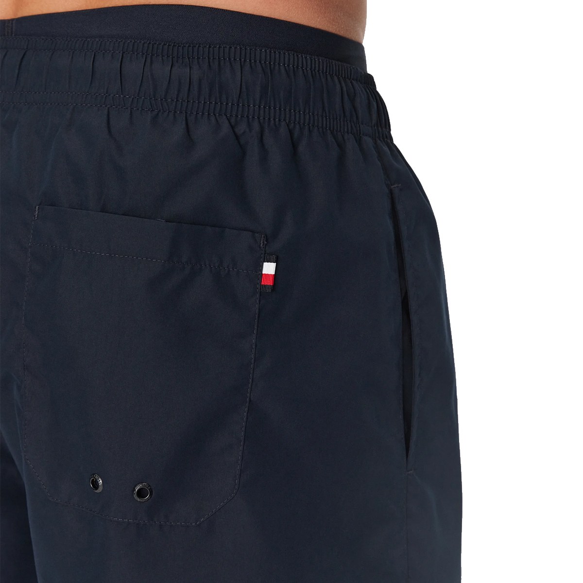 Te szorty kąpielowe MEDIUM DRAWSTRING DW, XLD marki TOMMY HILFIGER to wyraz nowoczesnej elegancji w sportowym wydaniu. Konstrukcja pasa przyciąga uwagę dwuwarstwowym rozwiązaniem, w którym wewnętrzna guma z logo wystaje ponad krawędź wiązaną troczkami. Prosty krój nogawki z subtelnym brandingiem na dole nadaje całości profesjonalny i uporządkowany charakter.