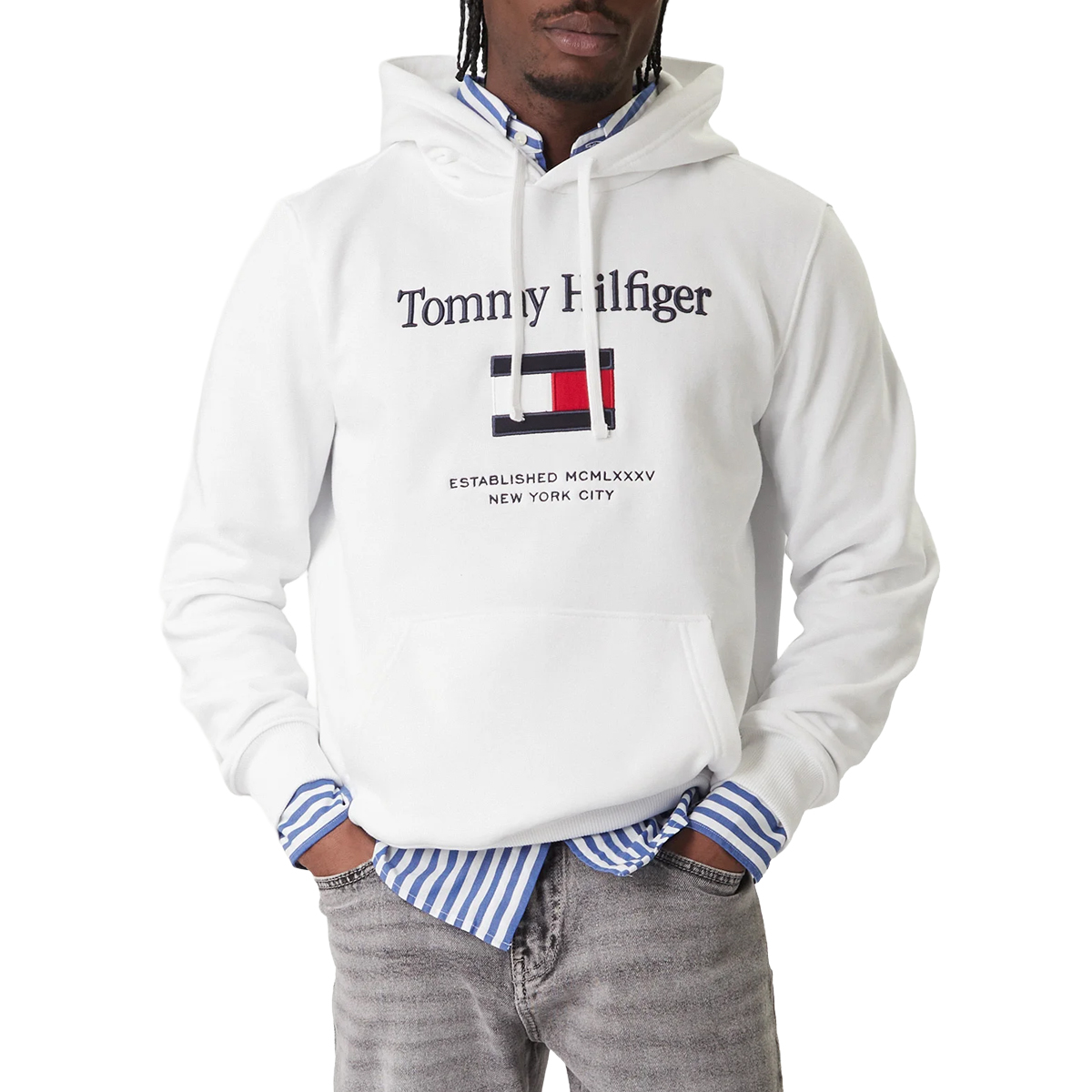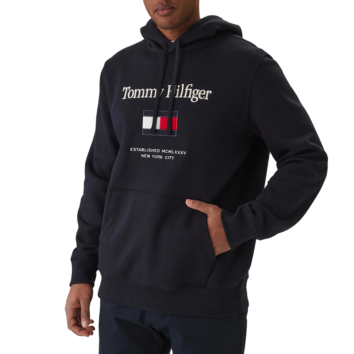 Ta FELPE TOMMY EMBRO FLAG HOO, DW5 marki TOMMY HILFIGER to kwintesencja sportowej elegancji, gdzie centralny haft przyciąga wzrok precyzją wykonania. Konstrukcja z regulowanym kapturem i elastycznymi ściągaczami gwarantuje wygodę i zachowanie fasonu. Obszerna kieszeń typu kangur jest nie tylko praktyczna, ale też dopełnia harmonijny wygląd całości.
