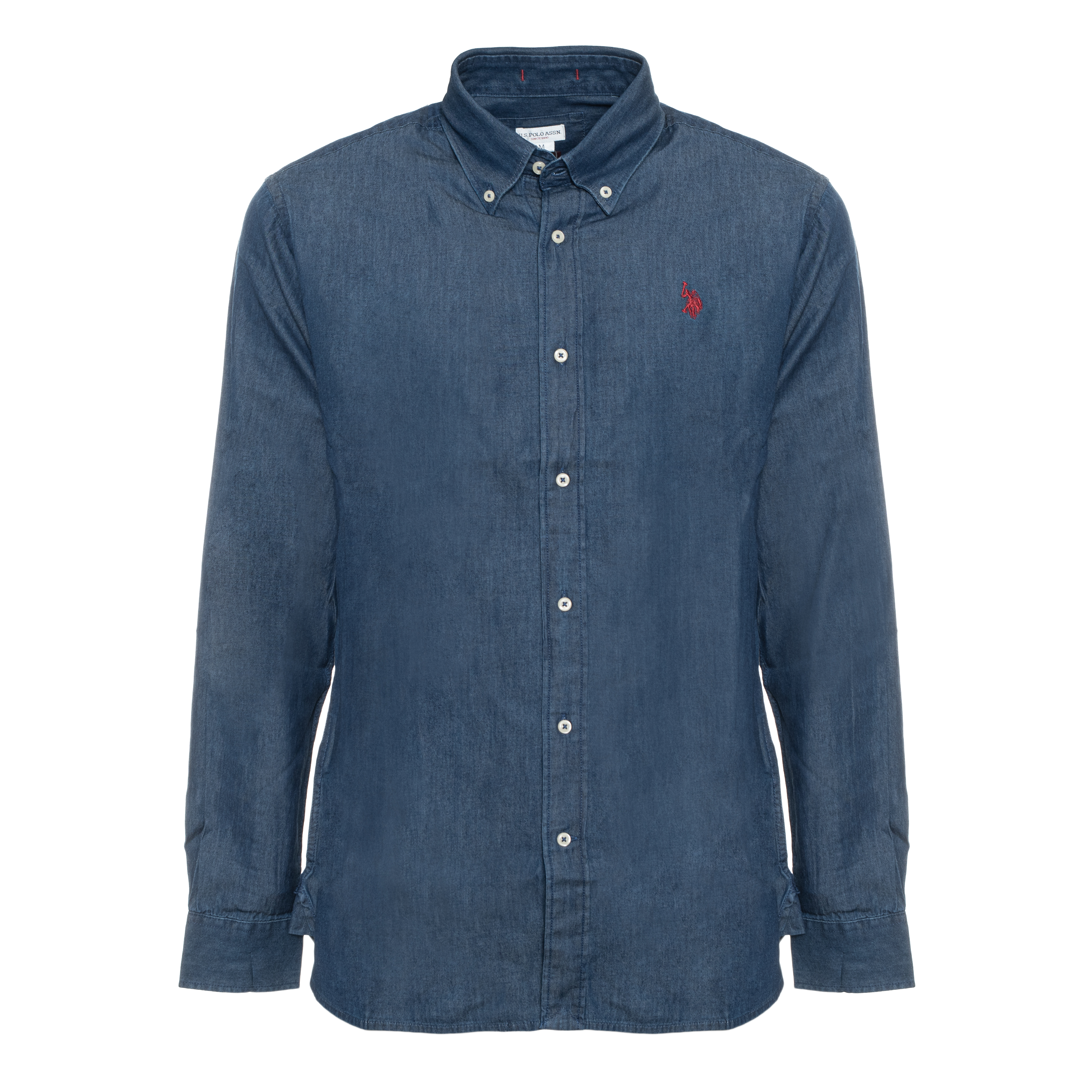 SHIRT, FOR MEN, BUTTON DOWN, SLIM FIT, LONG SLEEVES, SOLID COLOUR, WITH LOGO, BUTTONS CLOSURE