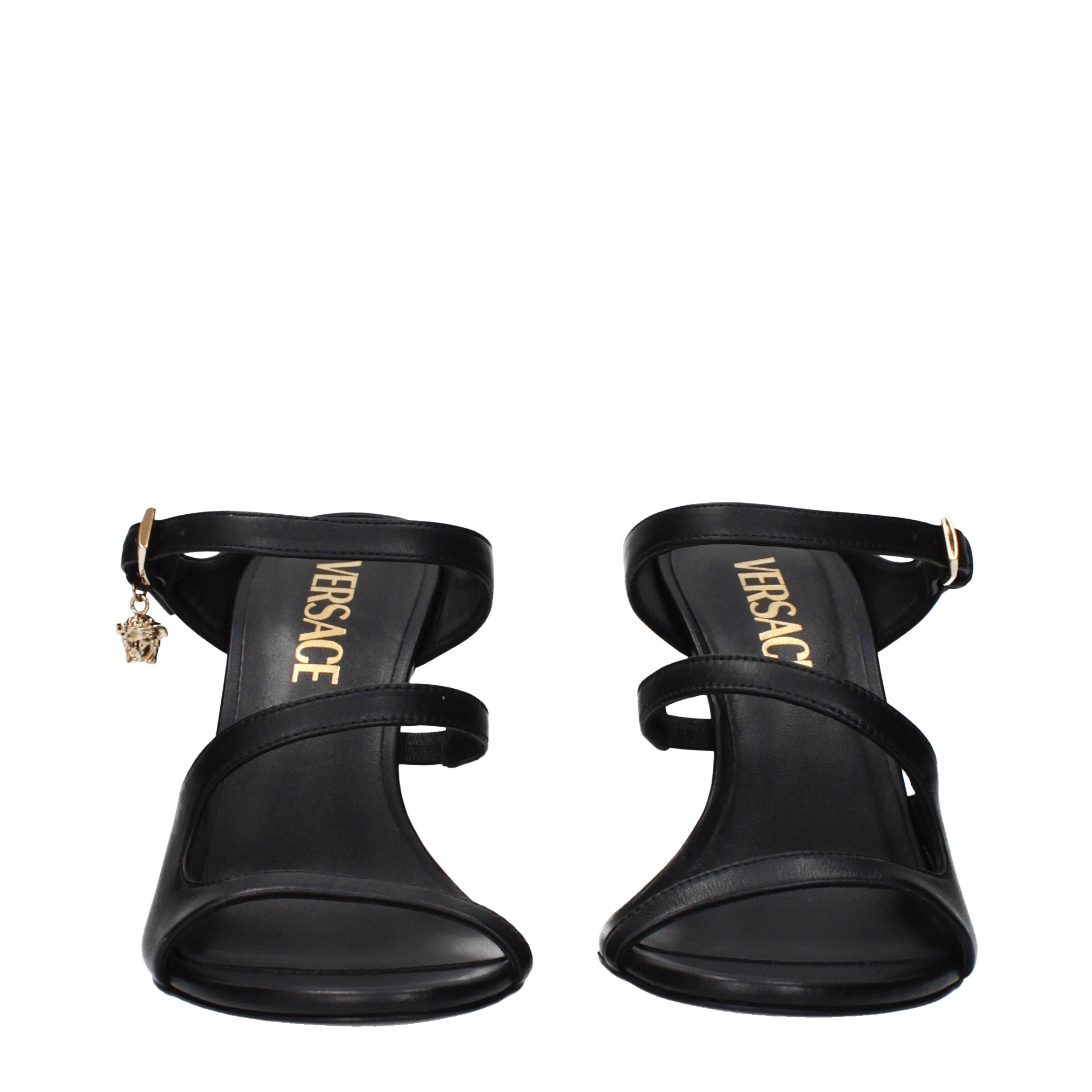 Te sandały od VERSACE prezentują nowoczesne podejście do formy, gdzie szeroki, stabilny obcas harmonizuje z delikatnymi paskami trzymającymi stopę. Projekt skupia się na czystości linii i wyrazistym profilu o wysokości dziesięciu centymetrów, a subtelny medalion przy zapięciu dodaje całości prestiżowego charakteru. To obuwie o wyjątkowej dynamice wizualnej.
