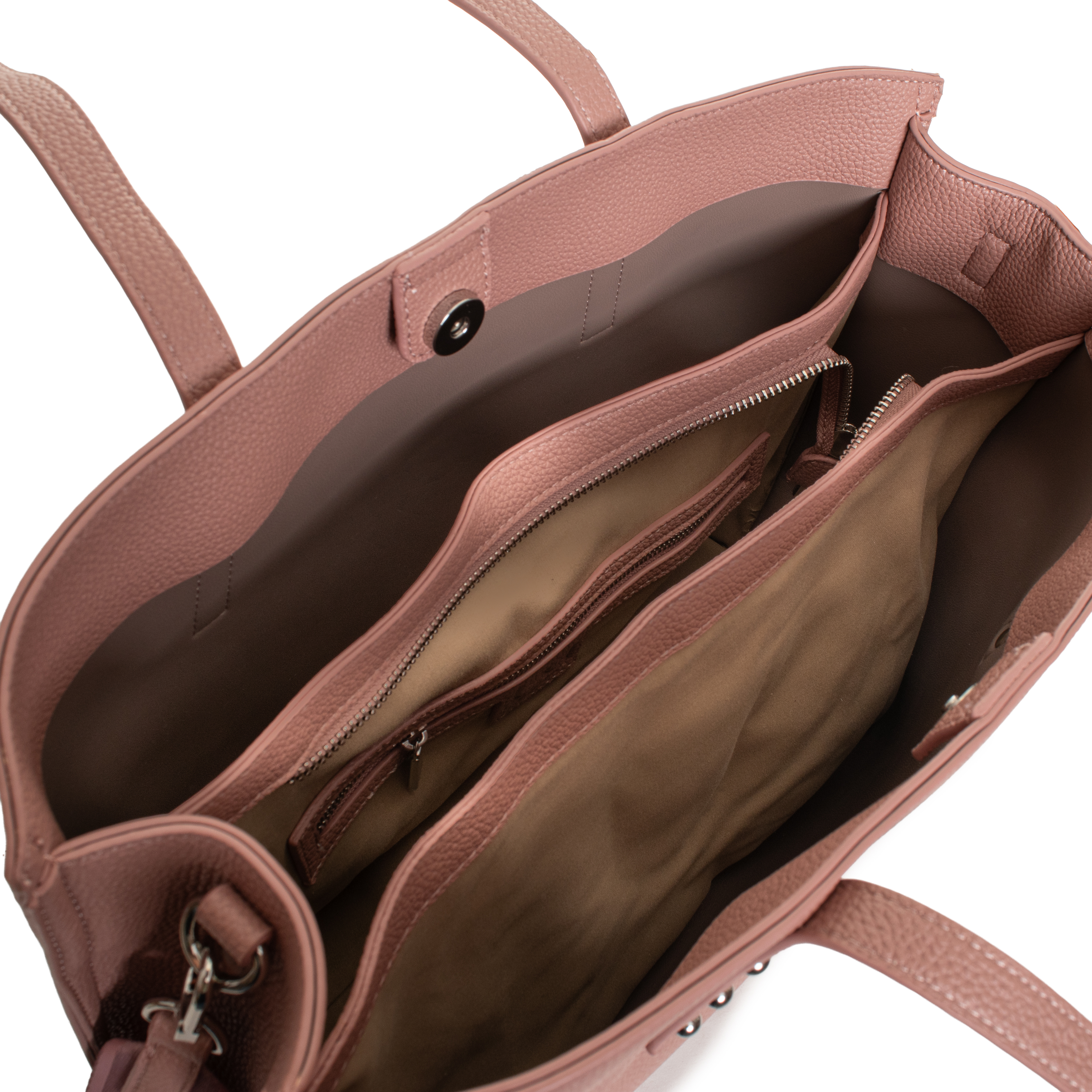 Fabricată din 100% PU, geanta oferă avantajul unei întrețineri facile și a unei rezistențe sporite la factorii externi. Acest material sintetic de înaltă densitate imită fidel aspectul pielii, menținând în același timp o greutate redusă și o suplețe constantă. Închiderea dublă, prin magnet și fermoar, asigură protecția necesară pentru obiectele personale într-un mod eficient și elegant.