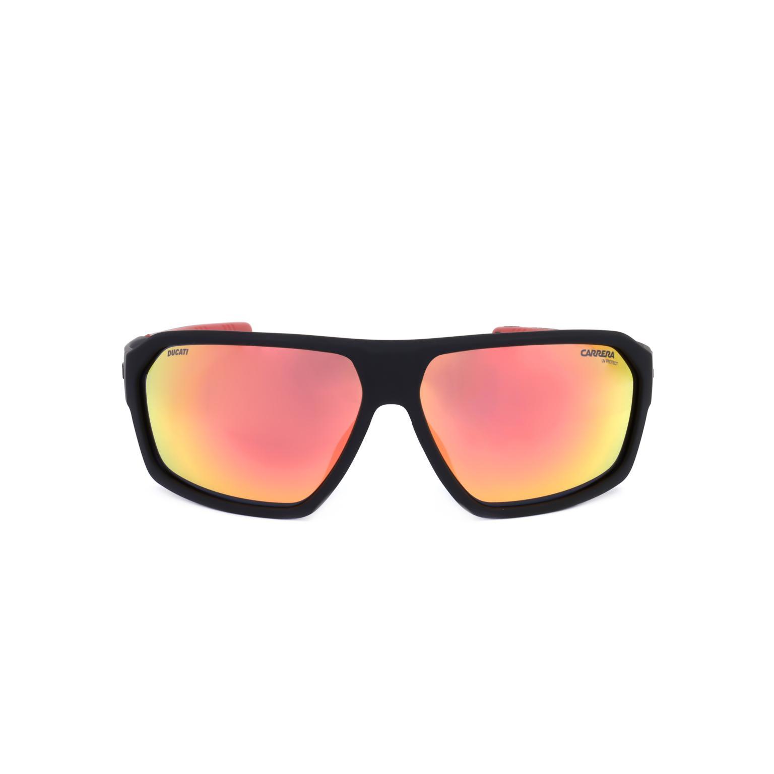 Acești ochelari de la CARRERA impresionează printr-o montură modernă și o formă dreptunghiulară pronunțată, oferind o acoperire vizuală extinsă. Designul lor este definit de linii clare și o structură fermă, cu brațe conturate pentru o potrivire sigură și confortabilă.