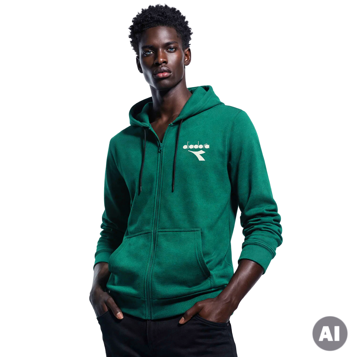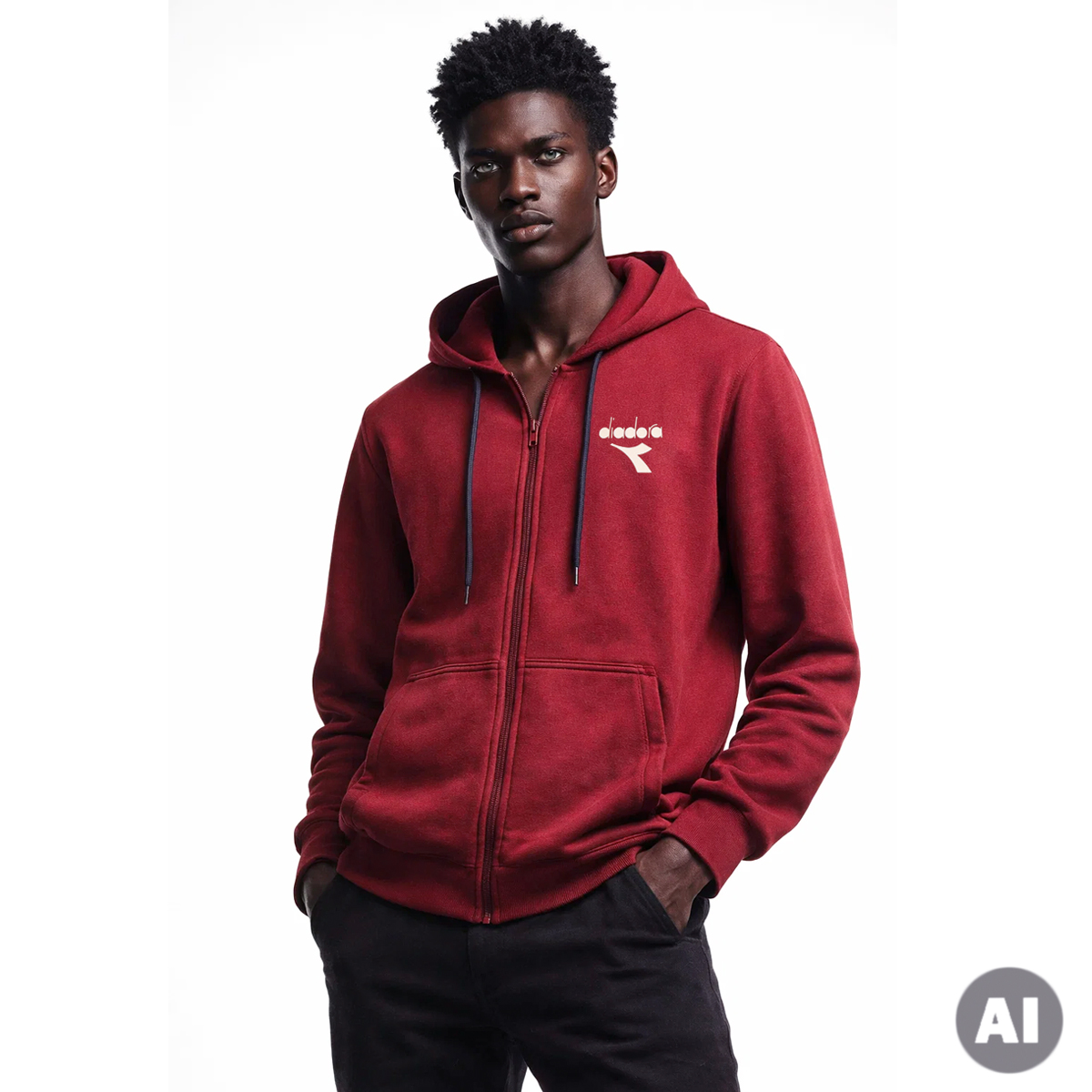 SWEATSHIRT, FOR MEN, WITH POCKET, DRAWSTRING HOOD, LONG SLEEVES, SOLID COLOUR, FLEECE, WITH LOGO, ZIP CLOSURE
