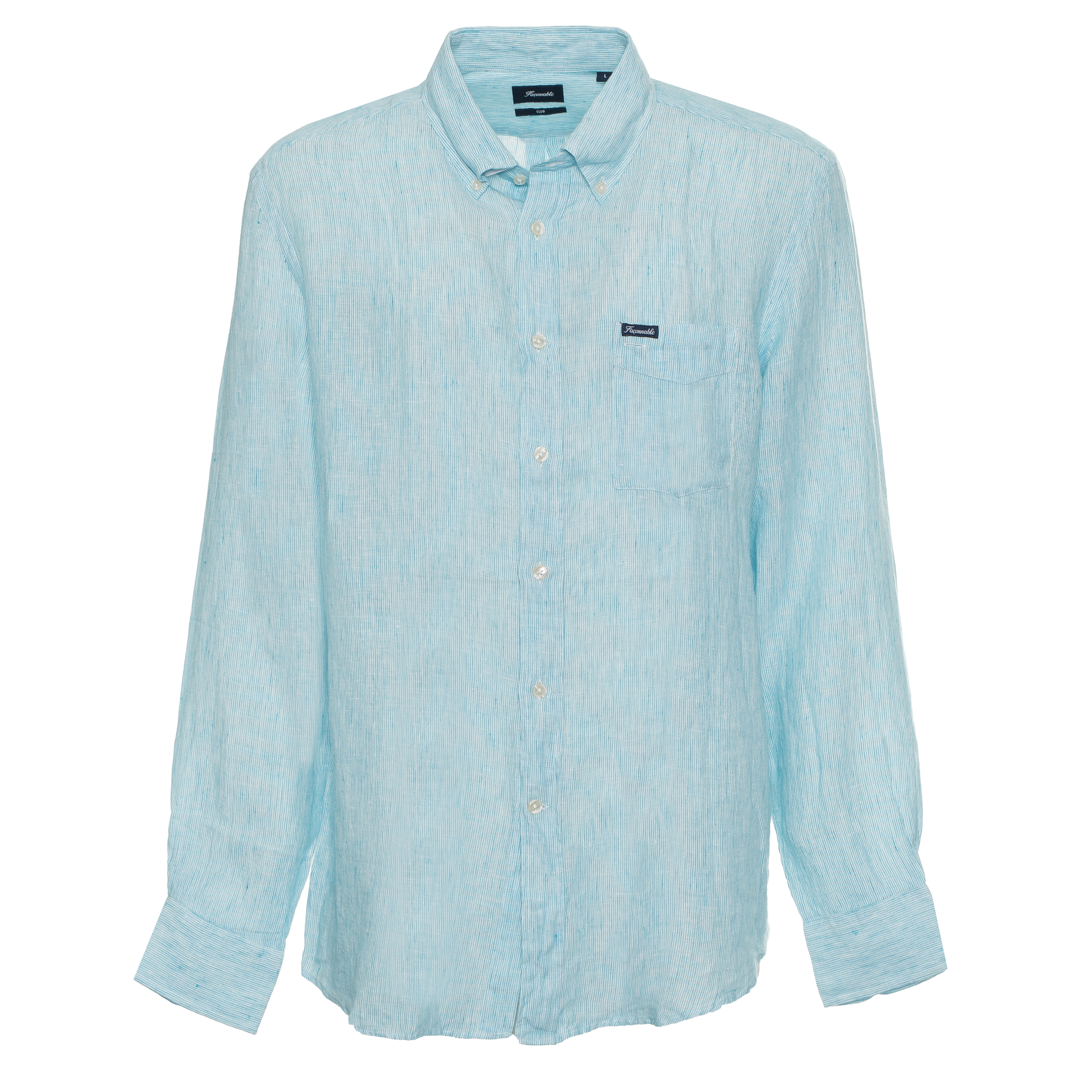 Confecționată din 100% in, cămașa beneficiază de proprietățile hipoalergenice și absorbante ale acestei fibre naturale. Tesătura de in este extrem de rezistentă și oferă o senzație de lejeritate, fiind ideală pentru menținerea confortului. Textura subtilă a materialului evidențiază calitatea superioară a construcției fără a compromite simplitatea designului.