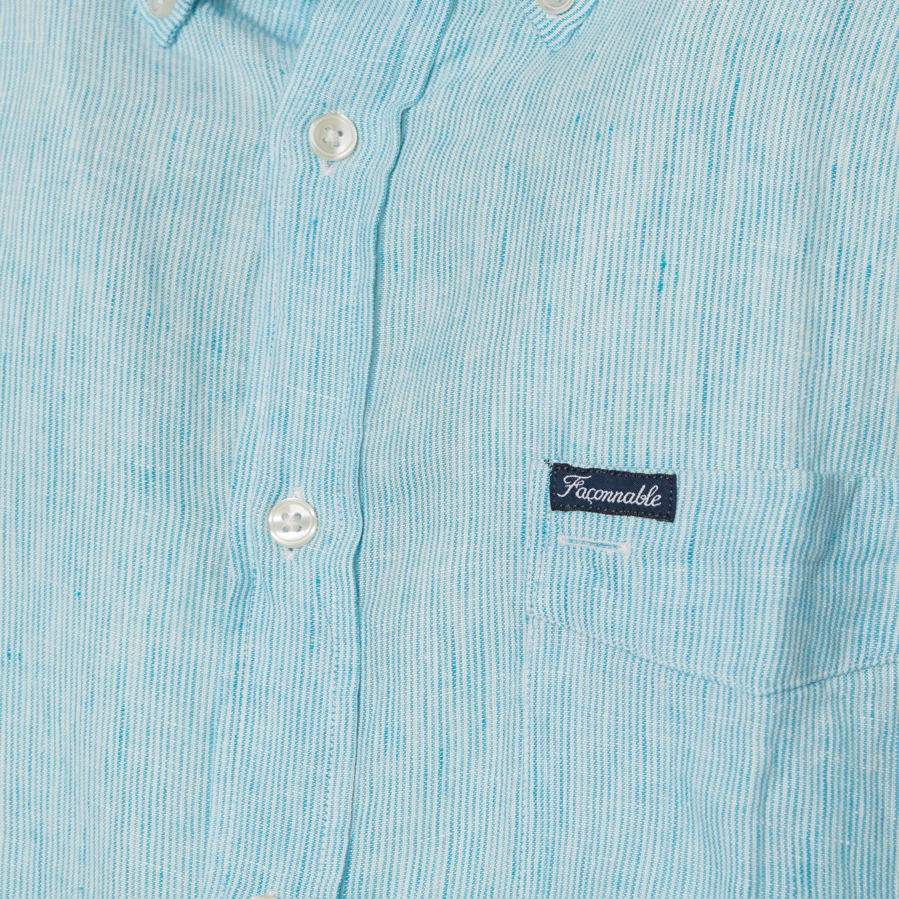 Această cămașă CLB BD MIC STR LIN de la FACONNABLE este o piesă vestimentară definită prin rafinament și o structură echilibrată. Detaliile precum gulerul cu nasturi și buzunarul aplicat pe piept subliniază o execuție tehnică riguroasă, oferind un aspect ordonat și distins.