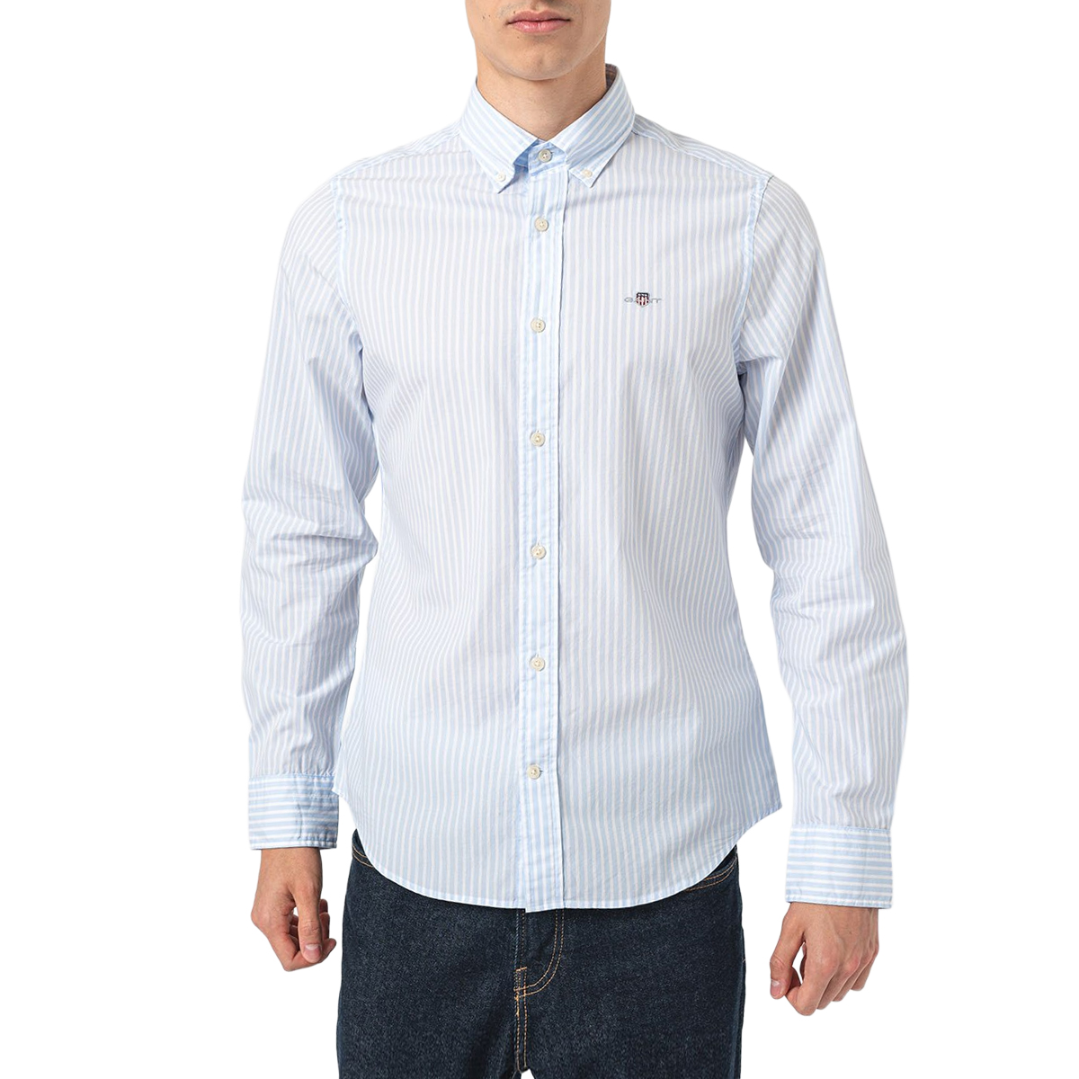 STRIPED SHIRT, FOR MEN, BUTTON DOWN, SLIM FIT, LONG SLEEVES, BI-COLOR, WITH LOGO, BUTTONS CLOSURE
