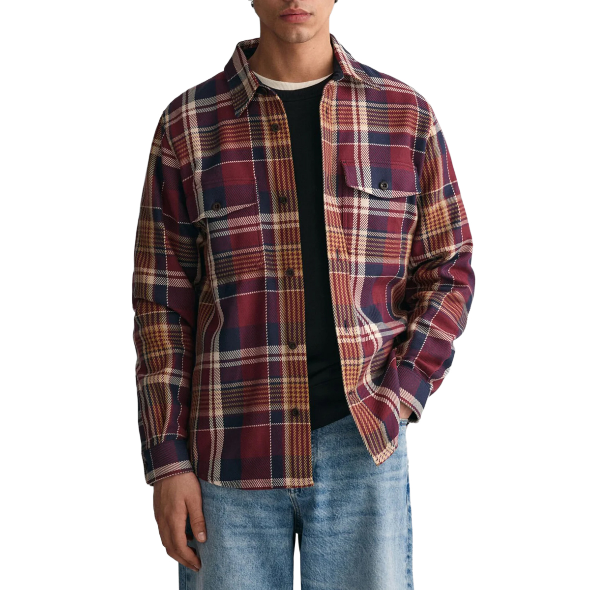 CHECKED SHIRT, FOR MEN, WITH POCKET, BASIC COLLAR, LONG SLEEVES, MULTICOLOR, BUTTONS CLOSURE