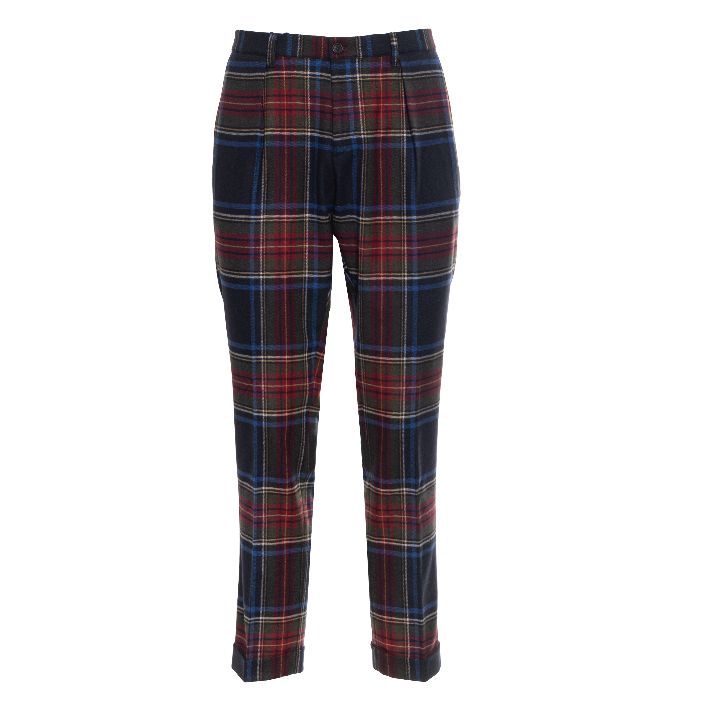 TROUSERS, FOR MEN, FOUR POCKETS, TARTAN, WITH LOGO, ZIP AND BUTTON CLOSURE