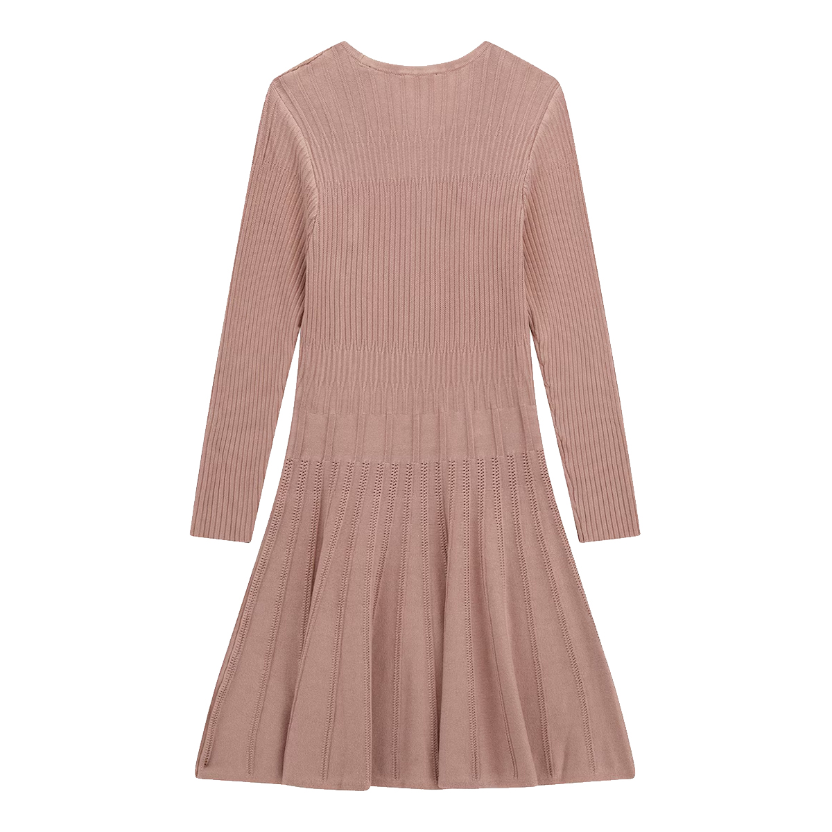 KNIT DRESS, FOR GIRLS, ROUND NECK, LONG SLEEVES, SOLID COLOUR, WITH LOGO