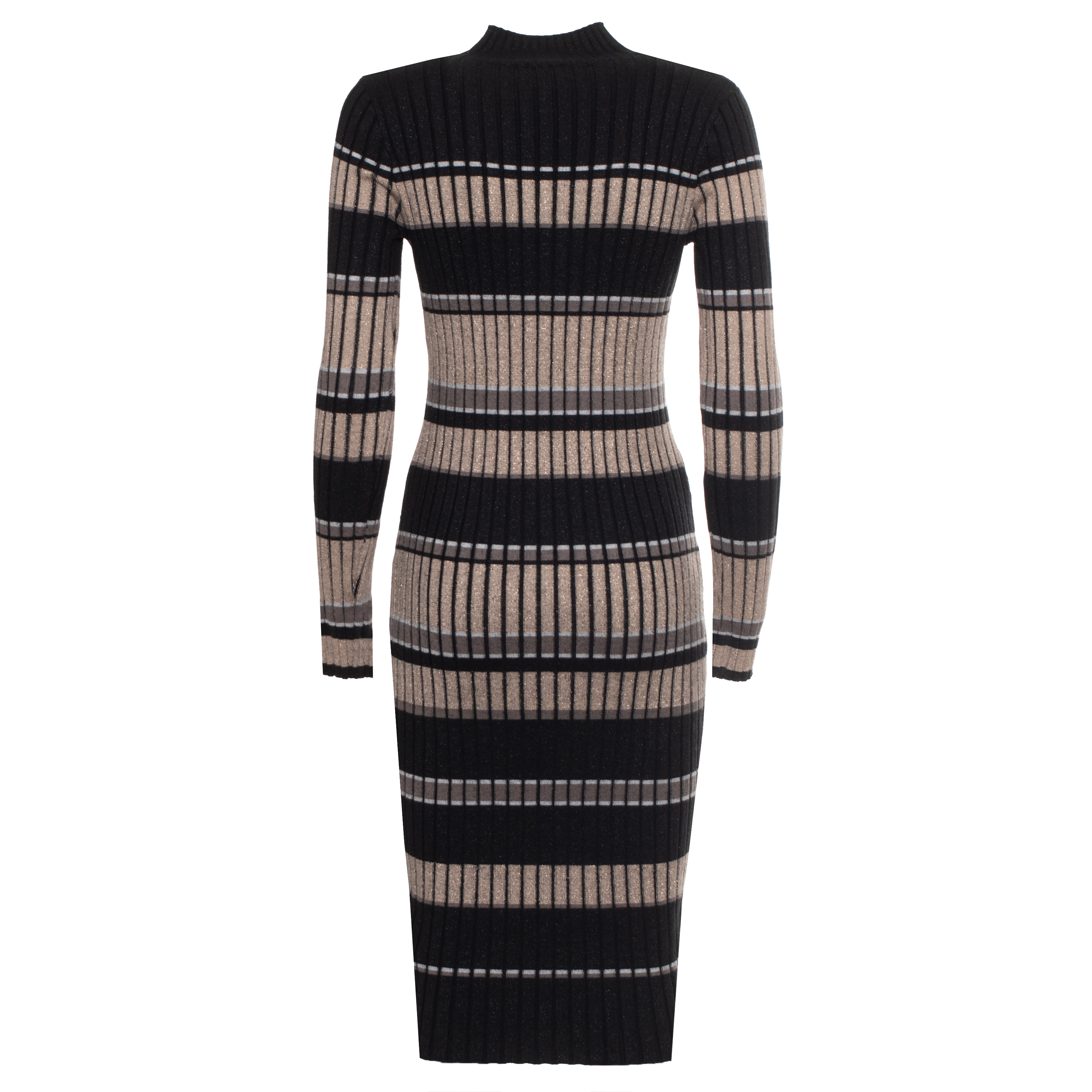 KNIT DRESS, 3/4 LENGHT DRESS, FOR WOMEN, ROUND NECK, LONG SLEEVES, STRIPES, BI-COLOR, WITH LOGO