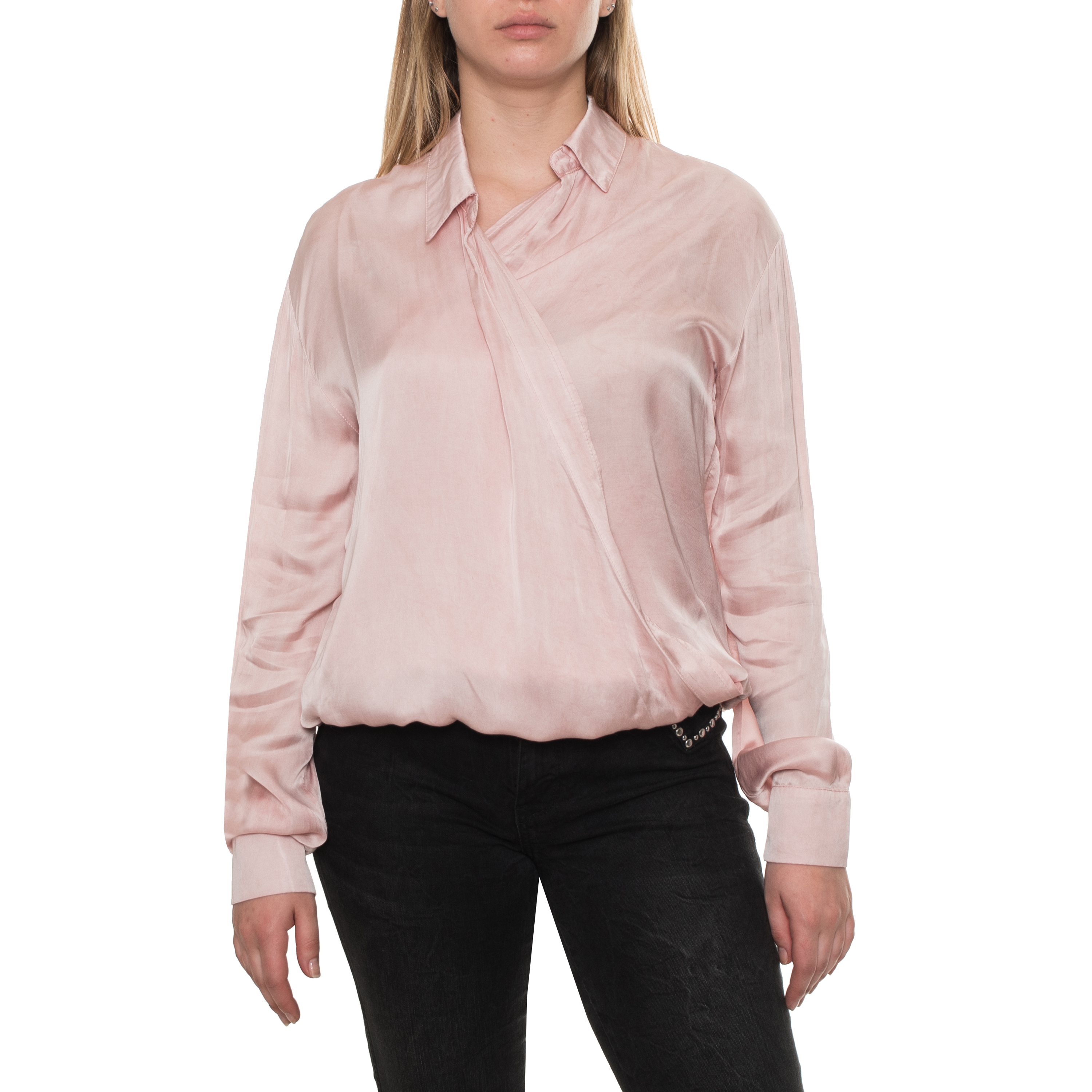 BLOUSE, FOR WOMEN, BASIC COLLAR, LONG SLEEVES, SOLID COLOUR, WITH LOGO