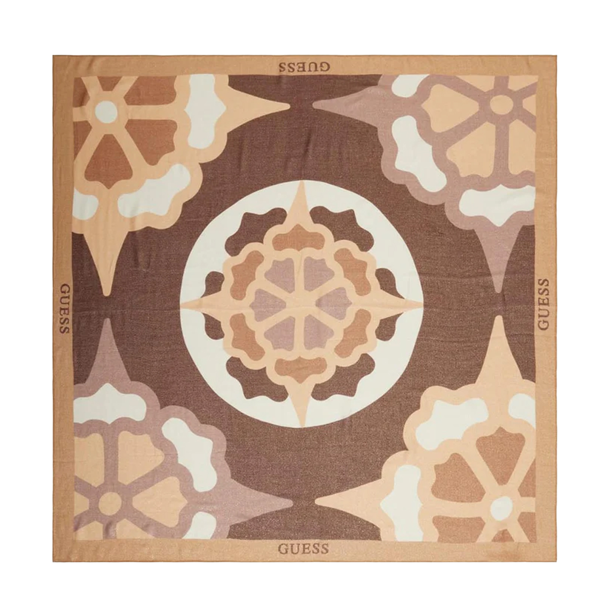 Acest FOULARD 120X120 de la GUESS este un accesoriu versatil, definit printr-un imprimeu geometric complex ce radiază dintr-un punct central. Marginile sunt finisate cu precizie, incluzând logo-ul brandului într-o dispunere repetitivă care conferă piesei un aspect ordonat și profesional. Dimensiunea sa generoasă permite o varietate de stilizări, fiind o piesă centrală pentru orice portofoliu de accesorii de lux.