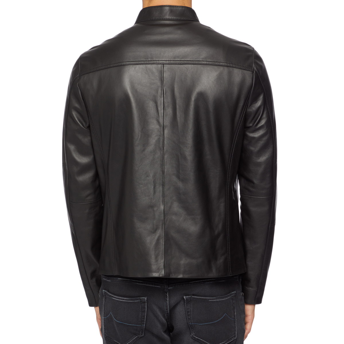 LEATHER JACKET, FOR MEN, LONG SLEEVES, SOLID COLOUR, WITH LOGO, ZIP CLOSURE