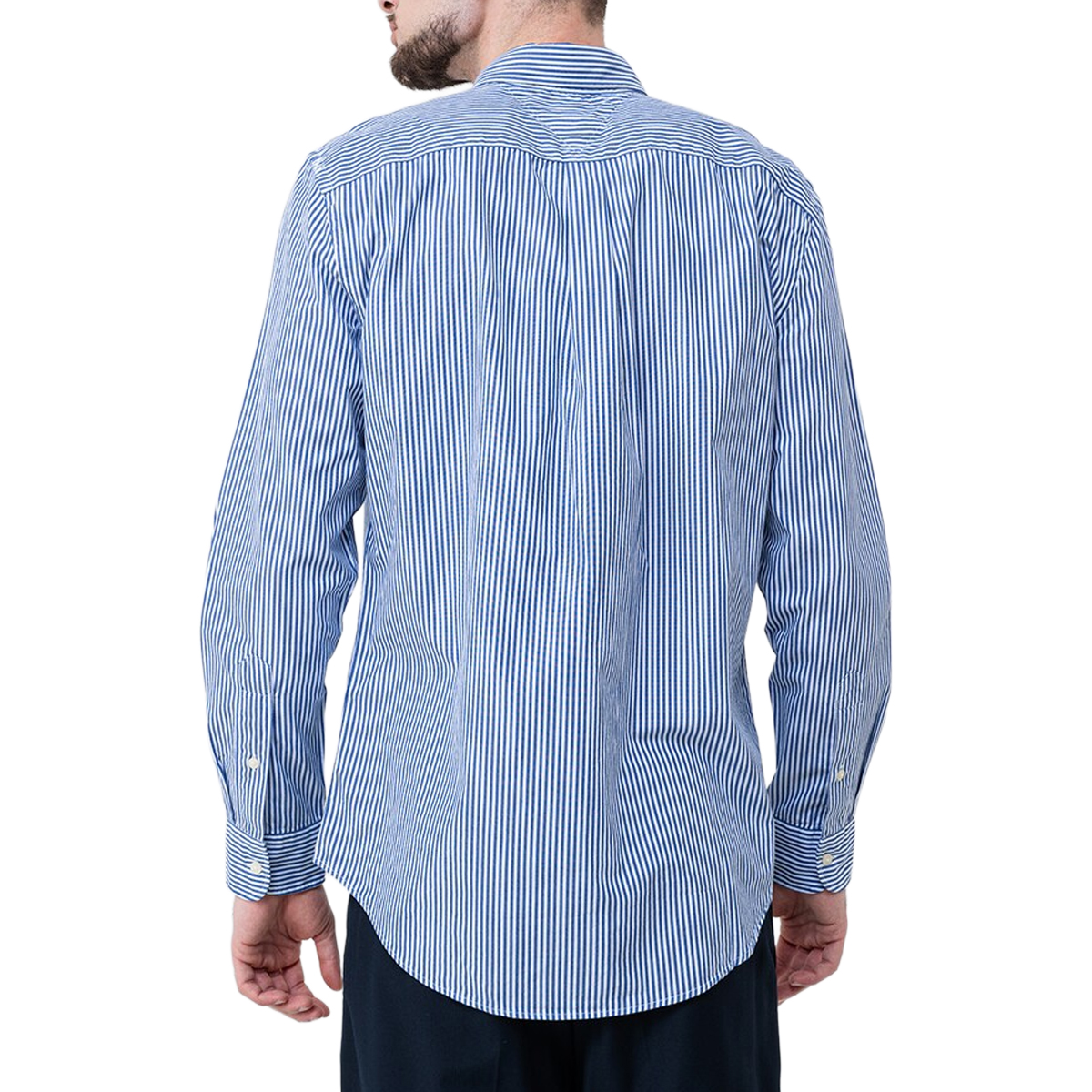 STRIPED SHIRT, FOR MEN, BUTTON DOWN, REGULAR FIT, LONG SLEEVES, BI-COLOR, WITH LOGO, BUTTONS CLOSURE