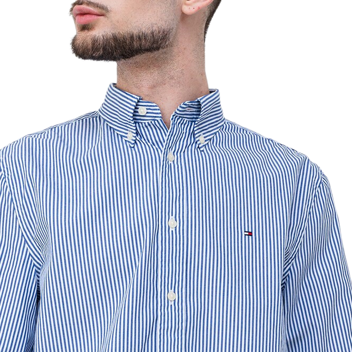 Această cămașă FLEX POPLIN CLASSIC, 0A6 de la TOMMY HILFIGER este o piesă vestimentară masculină cu un design clasic în dungi și o croială regulată. Gulerul button-down, închiderea frontală cu nasturi și manșetele abotonate contribuie la o estetică îngrijită. Logo-ul subtil al brandului este brodat pe piept, adăugând o notă de recunoaștere.