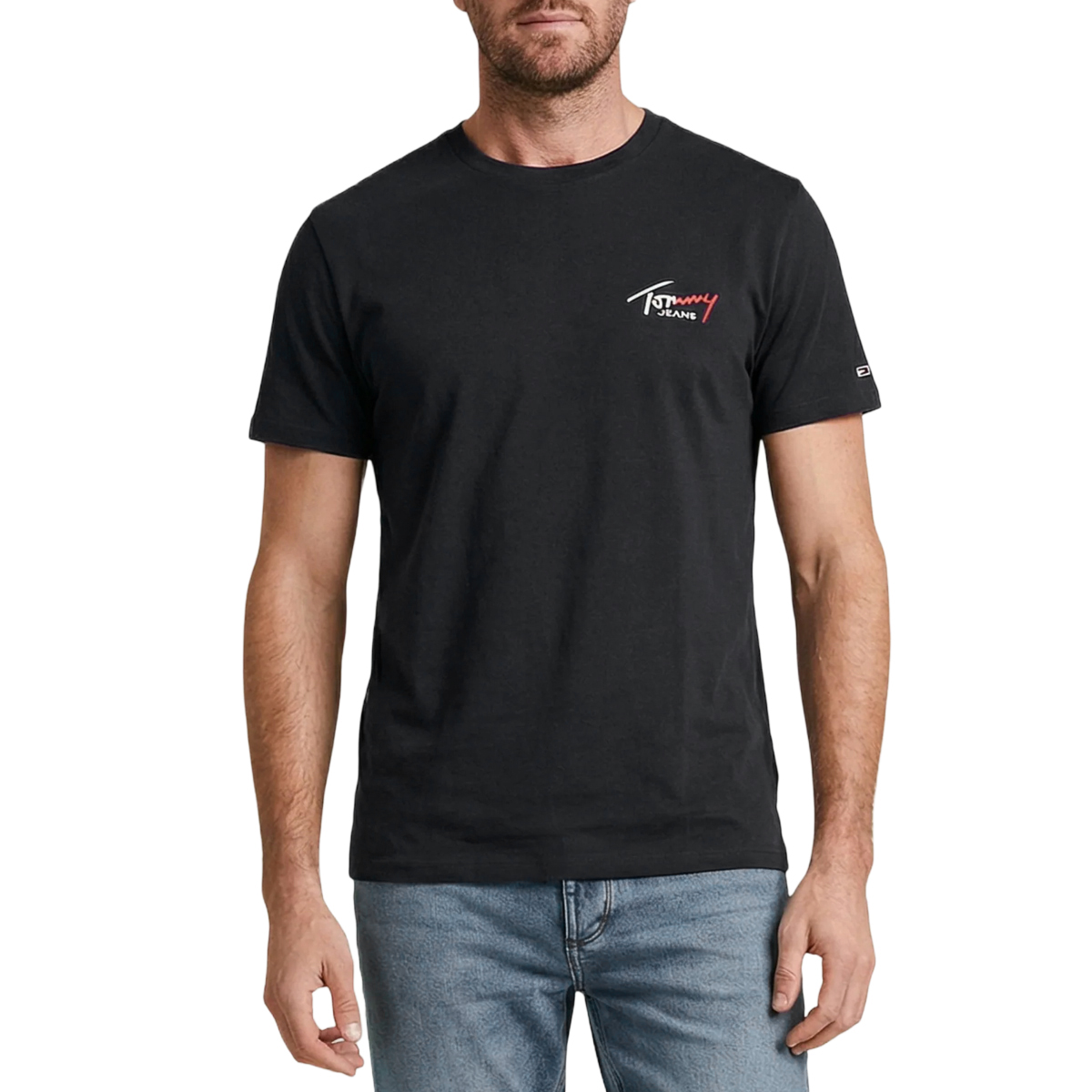 T-SHIRT, FOR MEN, ROUND NECK, SHORT SLEEVES, SOLID COLOUR, PRINTED LOGO