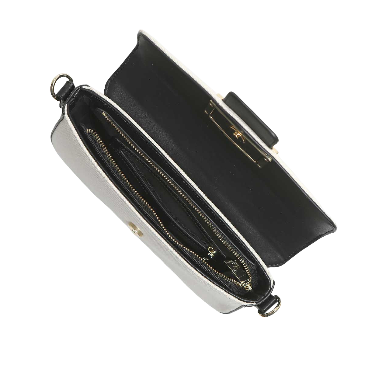 Эта сумка в руку ATMOSPHERE от BYBLOS представляет собой гармоничное сочетание строгого силуэта и выразительных деталей. Двухцветное исполнение акцентирует внимание на клапане с магнитной застежкой, украшенном массивным металлическим логотипом, что создает утонченный визуальный образ.