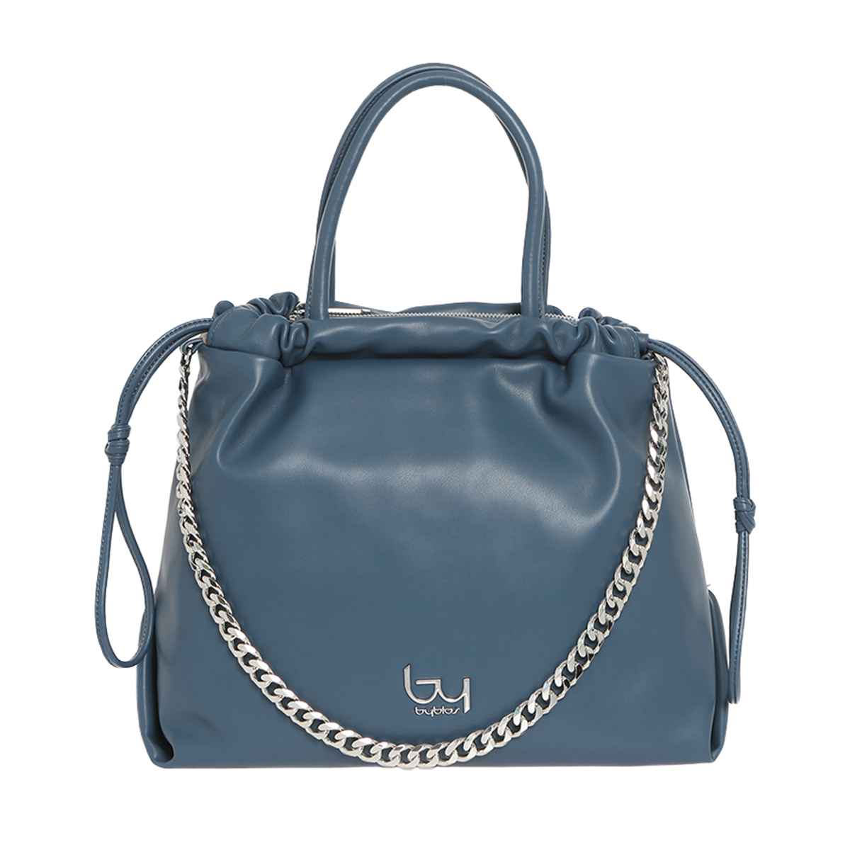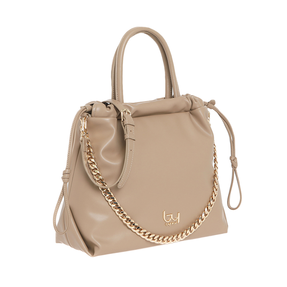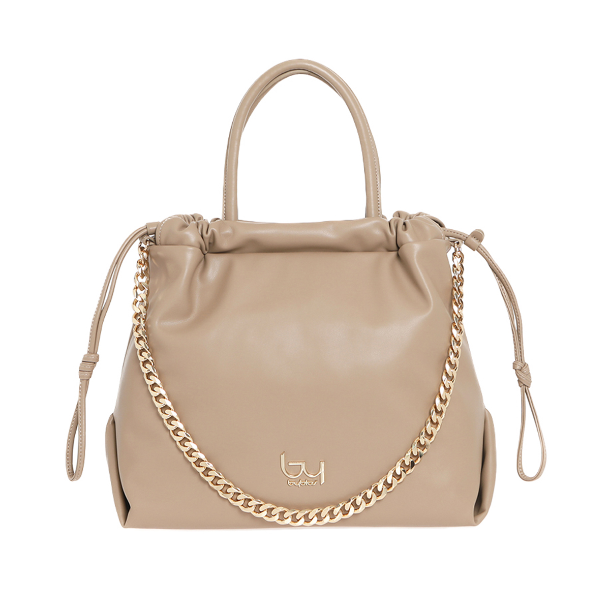HANDBAG, FOR WOMEN, DOUBLE HANDLE, SOLID COLOUR, WITH LOGO, COULISSE CLOSURE, ZIP CLOSURE