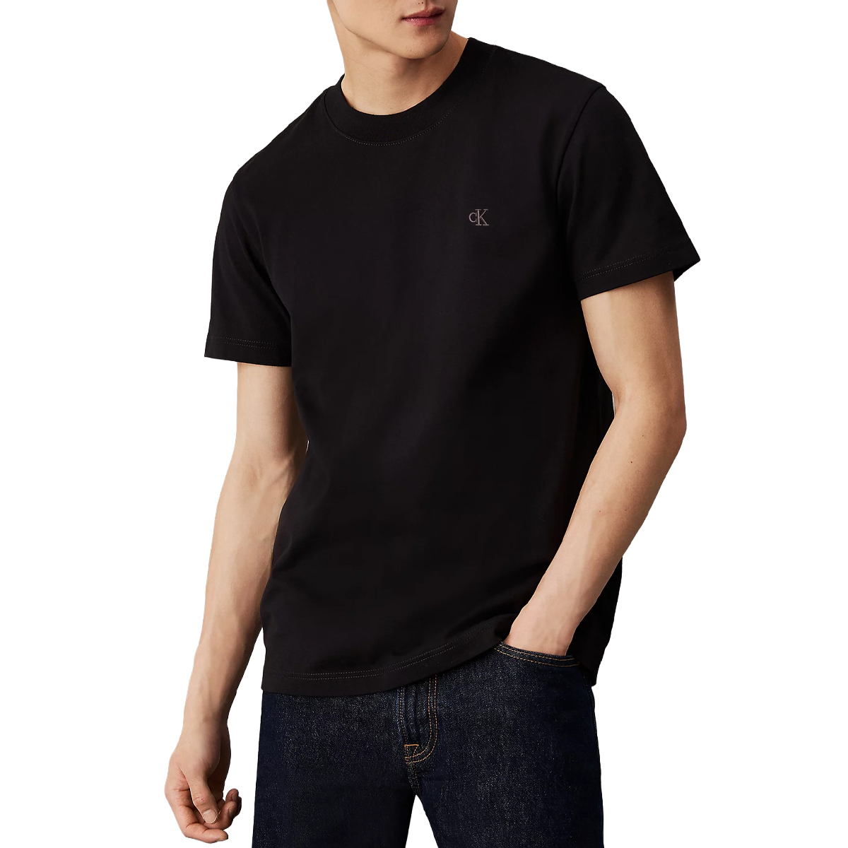 T-SHIRT, FOR MEN, ROUND NECK, SHORT SLEEVES, SOLID COLOUR, PRINTED LOGO
