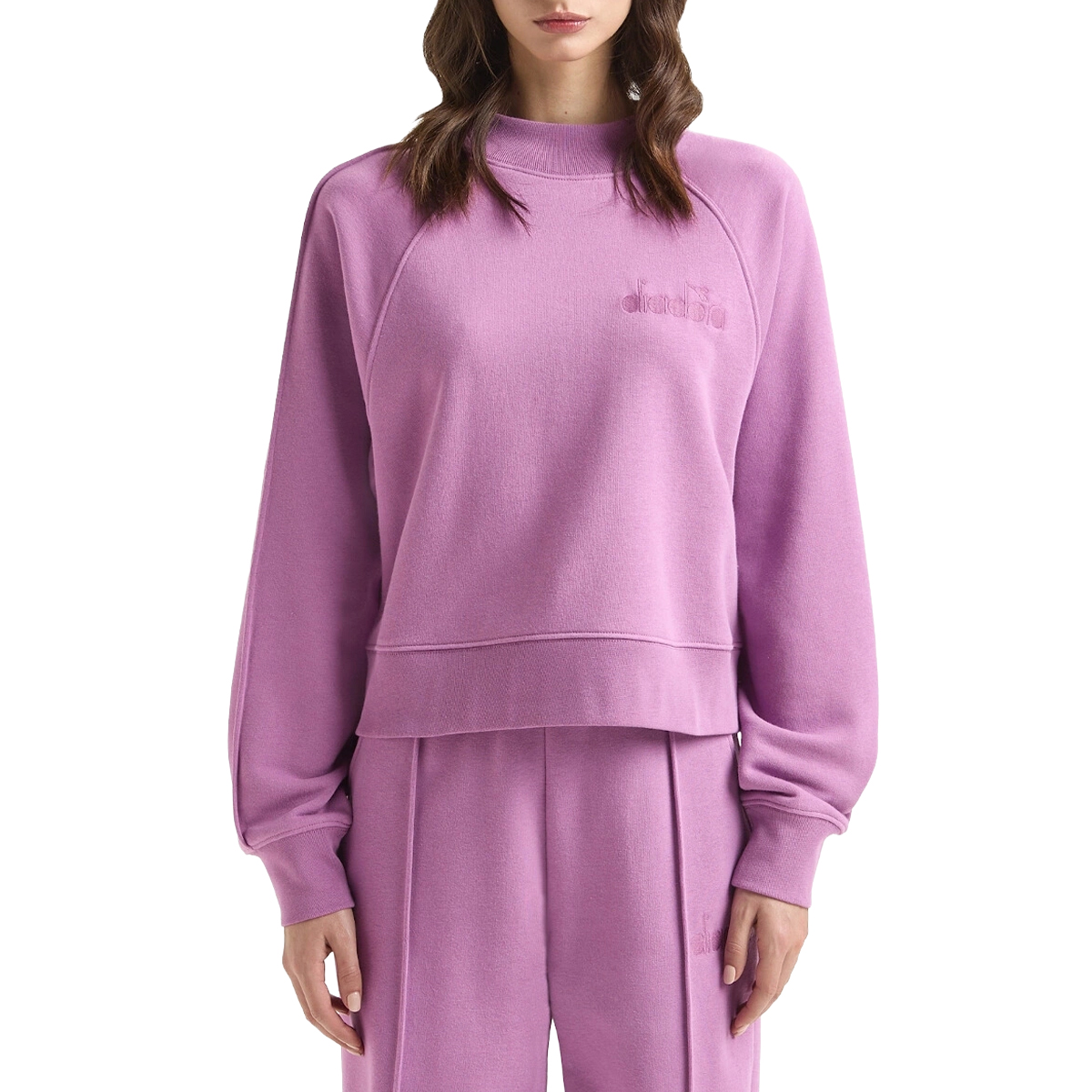 SWEATSHIRT, FOR WOMEN, ROUND NECK, LONG SLEEVES, SOLID COLOUR, BRUSHED FABRIC, EMBROIDERED LOGO