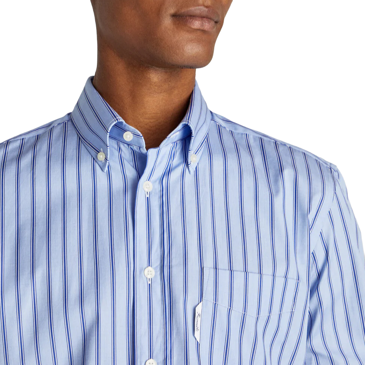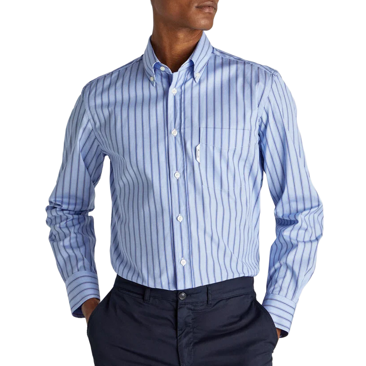 Эта рубашка CLB BD REGIMENTAL ST от FACONNABLE представляет собой образец высокого портновского искусства с характерным воротником на пуговицах. Вертикальные полоски и аккуратный нагрудный карман с фирменным логотипом подчеркивают структурированный силуэт и внимание к деталям.
