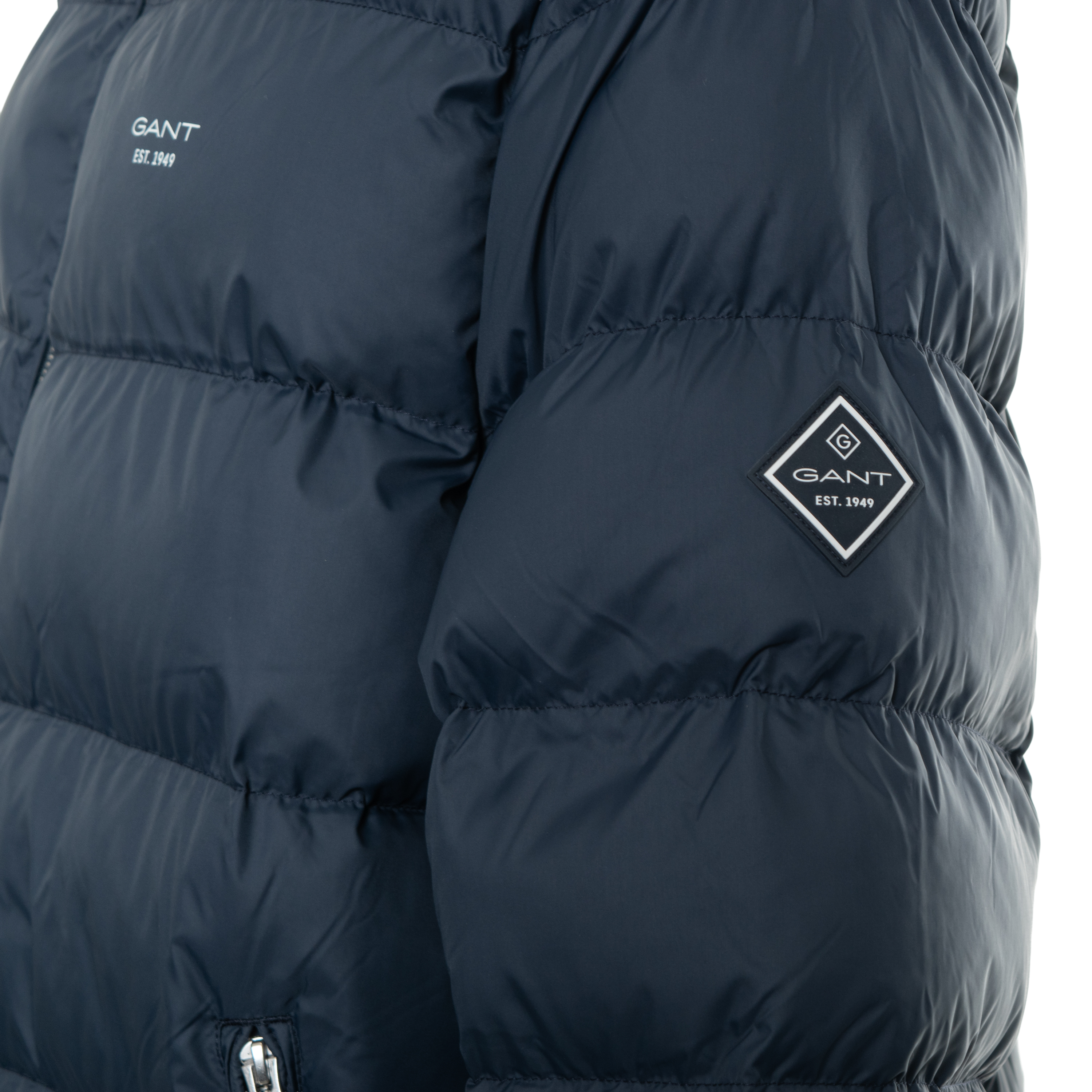 PADDED JACKET, FOR MEN, POCKETS, WITH HOOD, LONG DROP, LONG SLEEVES, SOLID COLOUR, WITH LOGO, ZIP CLOSURE
