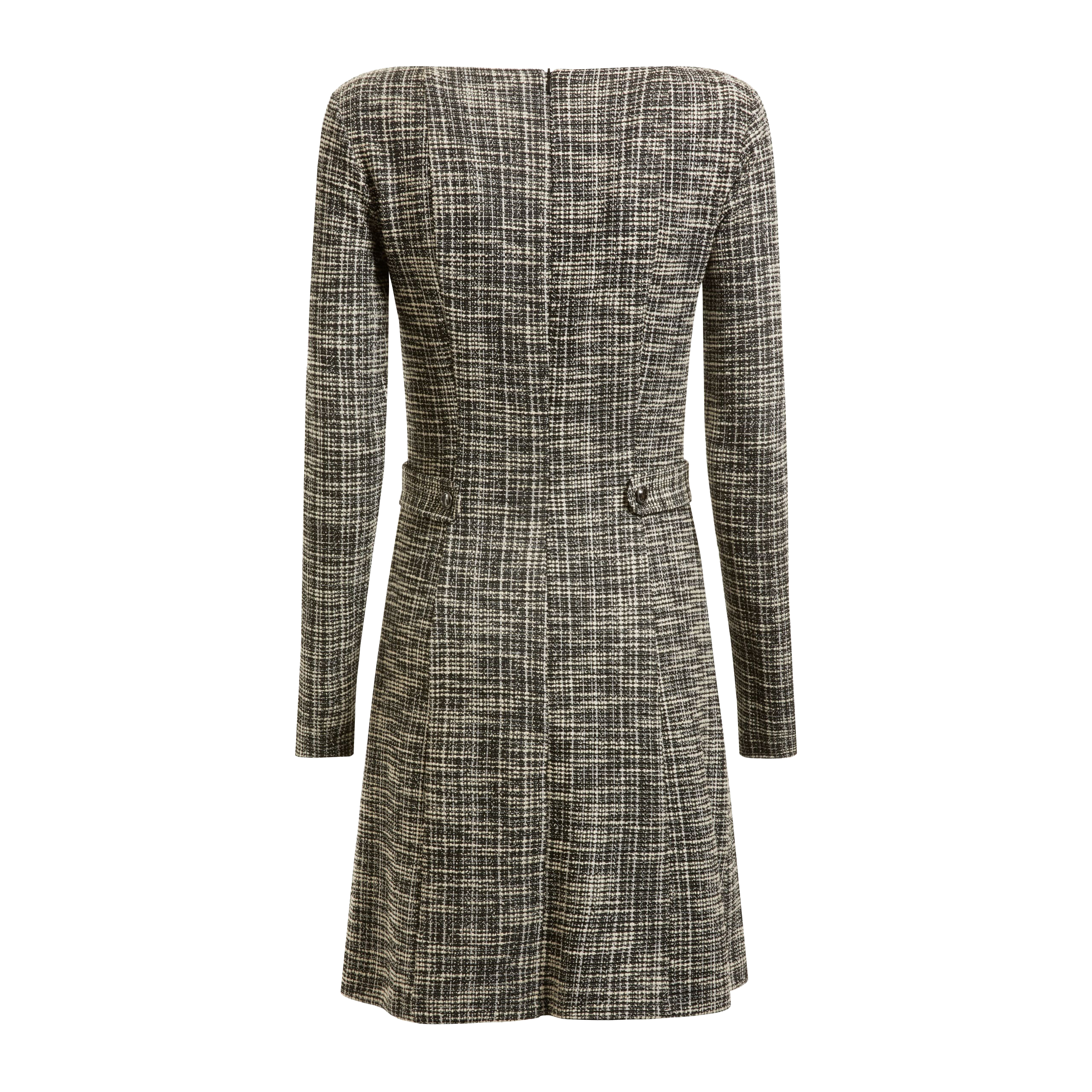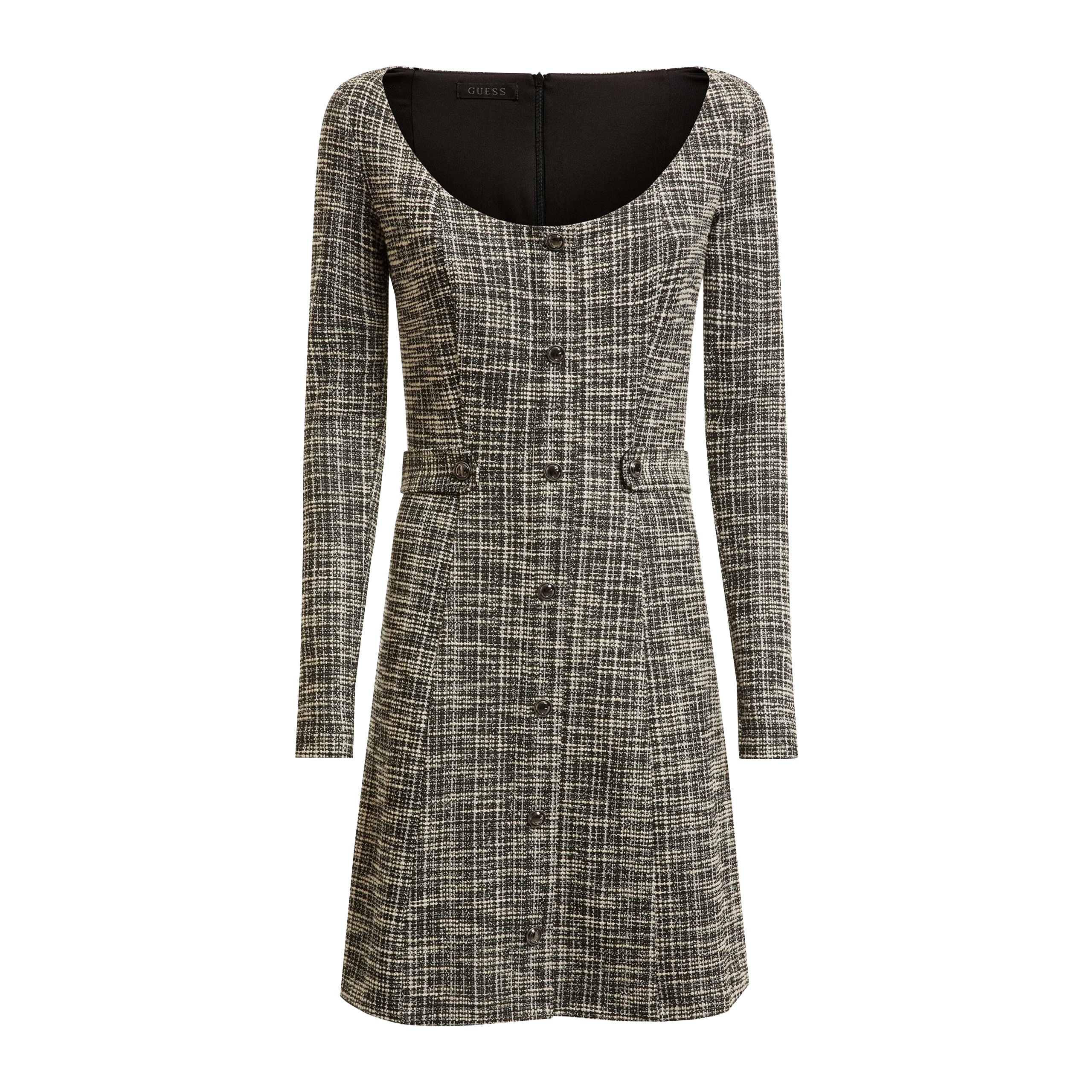 DRESS, FOR WOMEN, BOAT NECK, LONG SLEEVES, PATTERNED, WITH LOGO