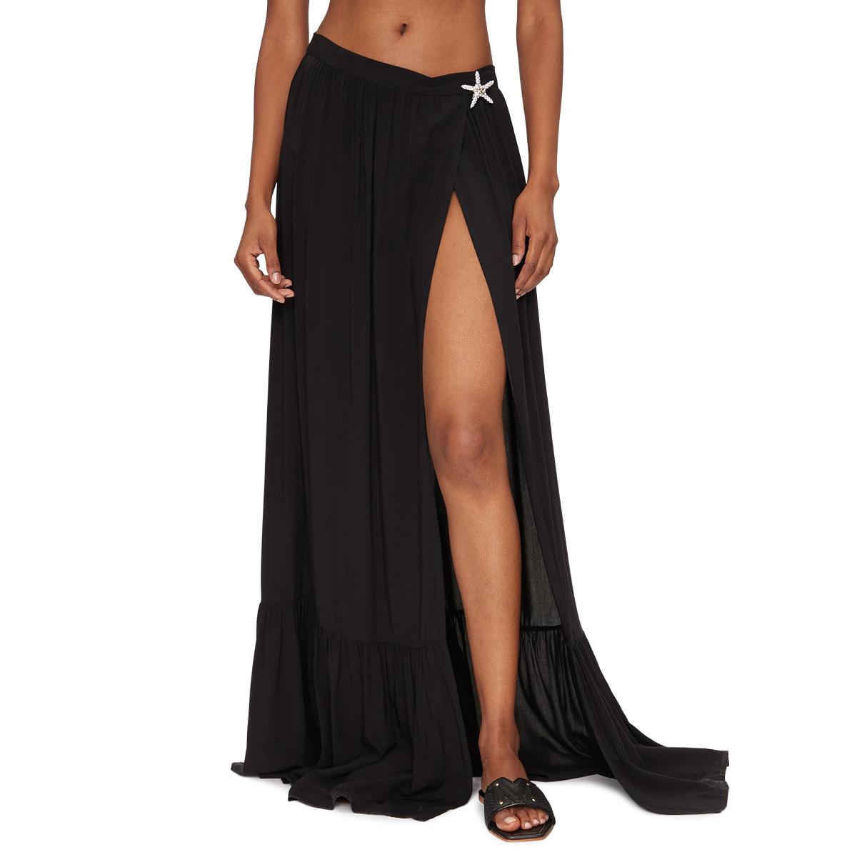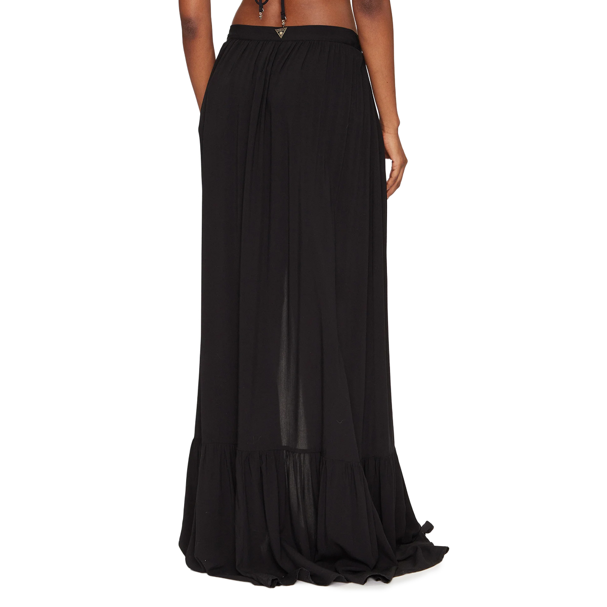 Эта юбка Wrapped Long Skirt от GUESS представляет собой образец текучего дизайна и изящных пропорций. Запах с глубоким боковым разрезом создает эффектное движение при ходьбе, а широкая оборка по нижнему краю добавляет подолу воздушности. Небольшой декоративный элемент с логотипом на поясе служит деликатным акцентом, подтверждающим статус изделия.