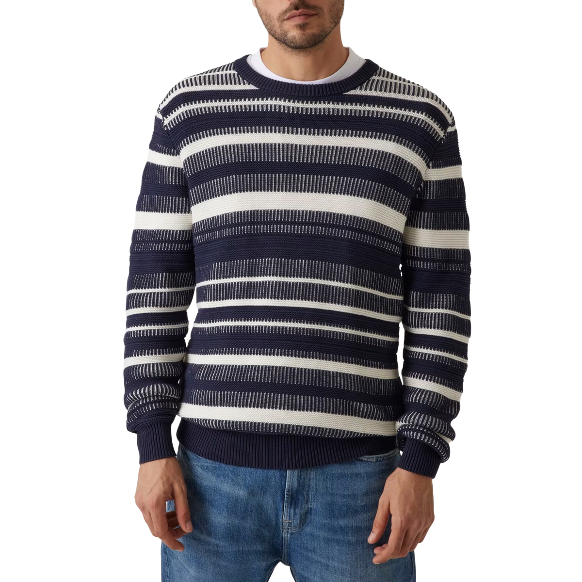 KNITWEAR, FOR MEN, ROUND NECK, LONG SLEEVES, BI-COLOR, WITH LOGO
