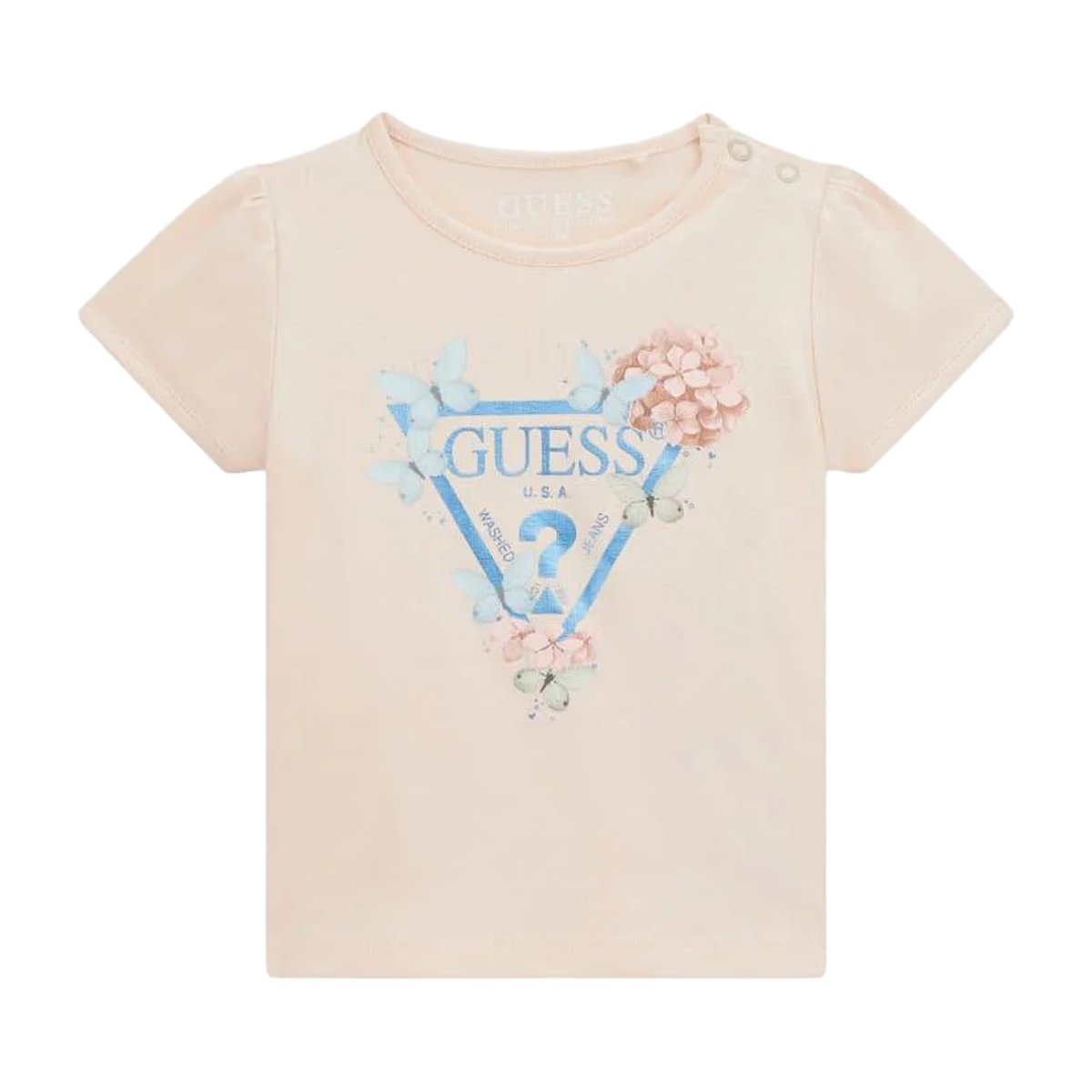 Эта T-SHIRT SS T-SHIRT от GUESS представляет собой сочетание художественного оформления и практичного кроя. Короткие рукава дополнены небольшими сборками у плечевого шва, что создает изящный объем, а кнопки на плече обеспечивают удобство при переодевании. Прямой силуэт и аккуратная обработка горловины подчеркивают высокое качество исполнения, характерное для дизайнерской продукции.
