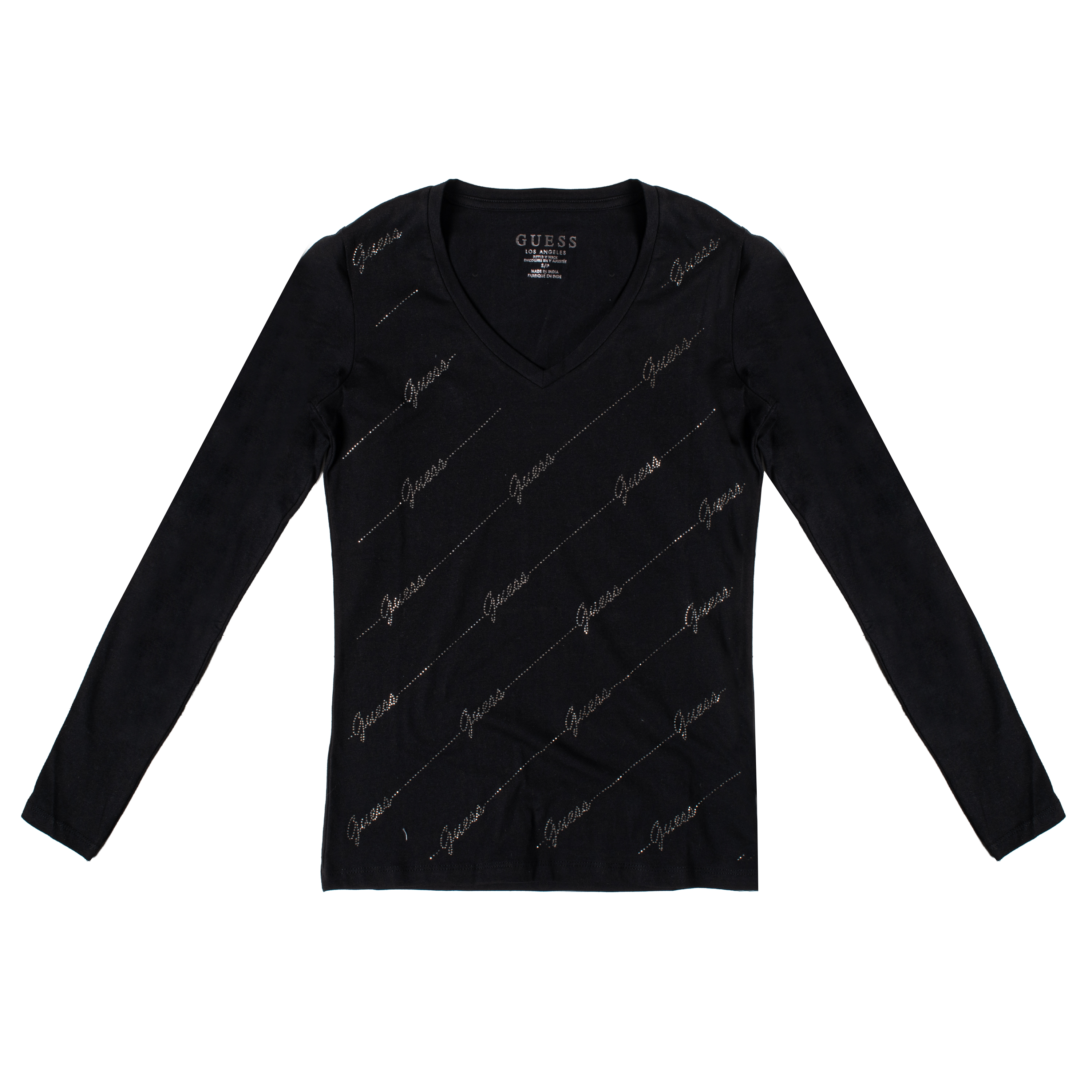 T-SHIRT, FOR WOMEN, V- NECK, LONG SLEEVES, SOLID COLOUR, WITH LOGO