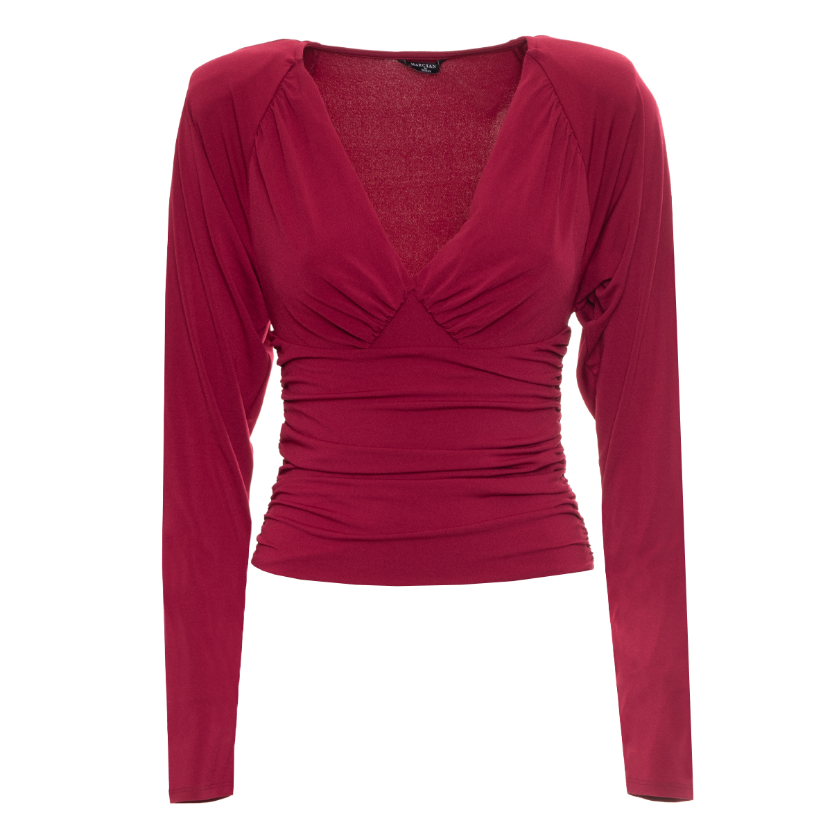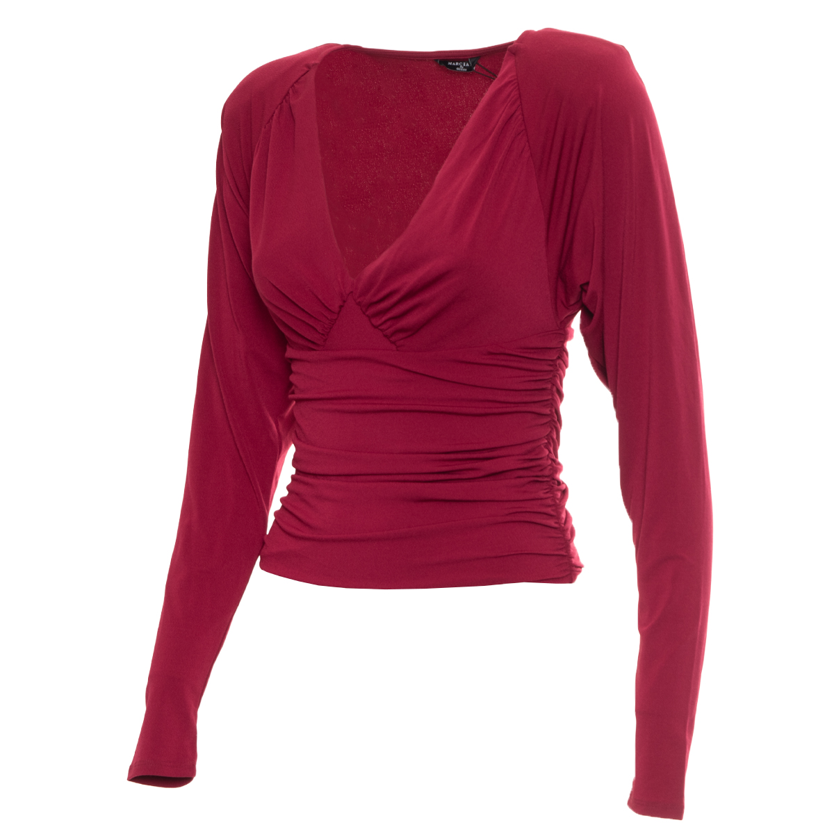TOP, FOR WOMEN, V-NECK, LONG SLEEVES, SOLID COLOUR, WITH LOGO