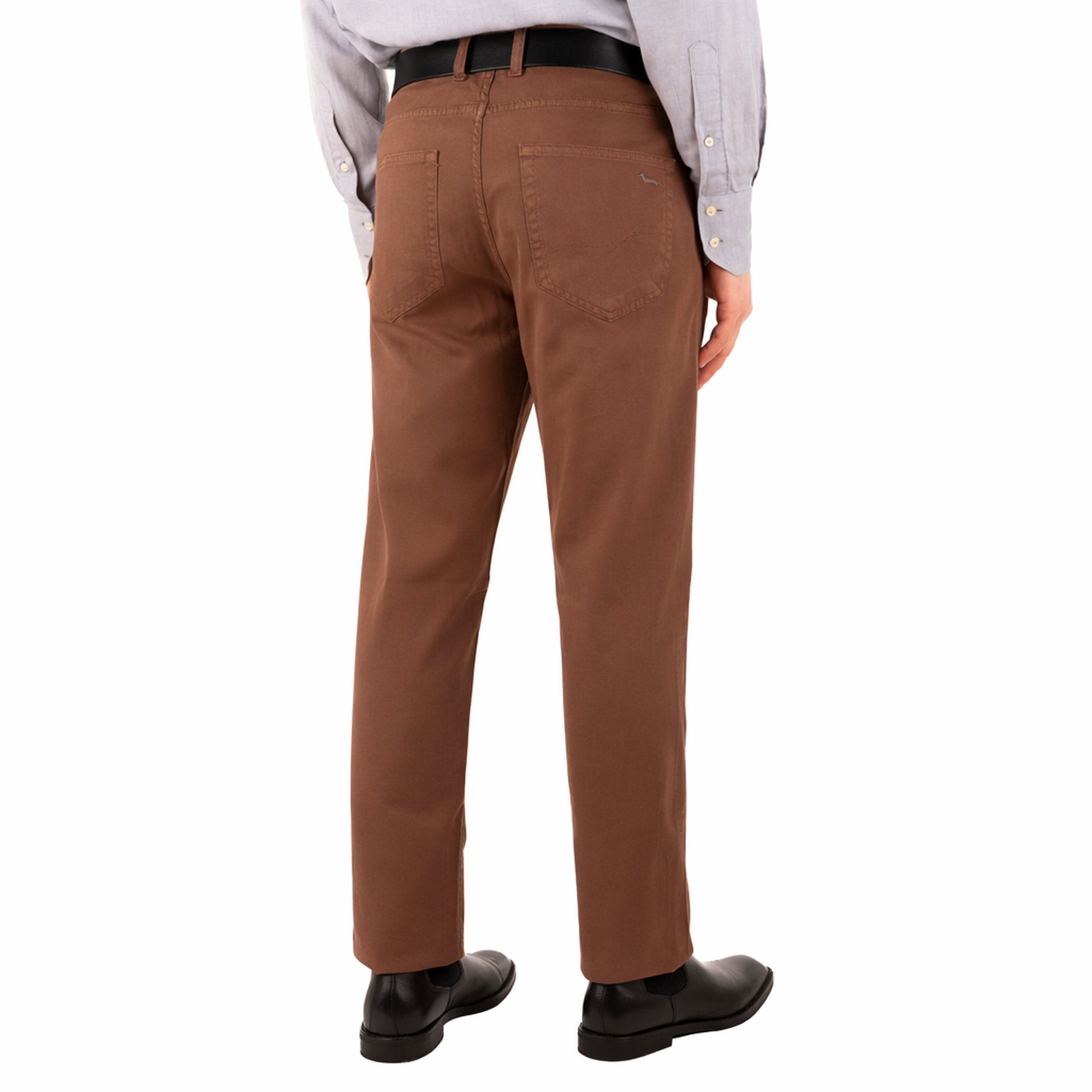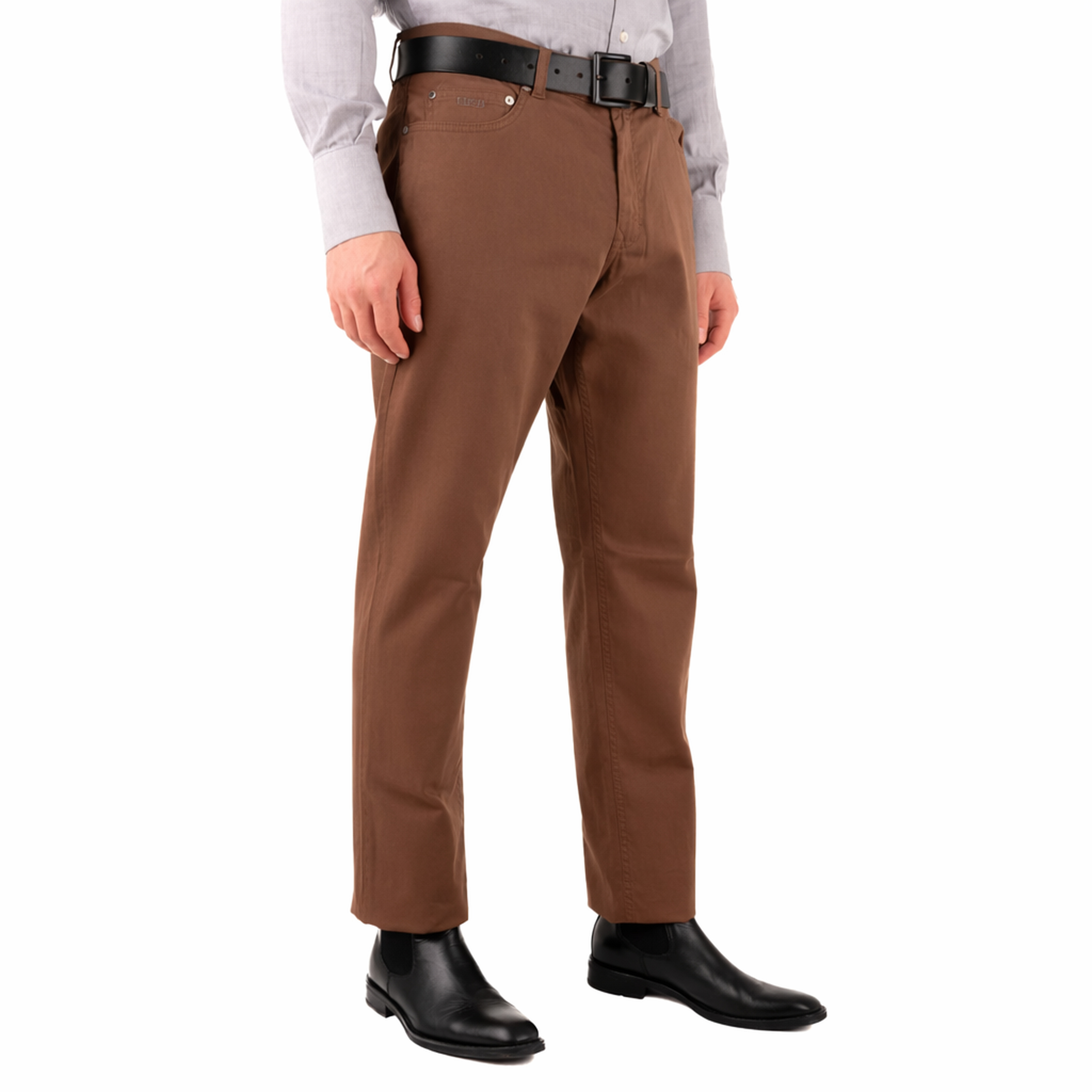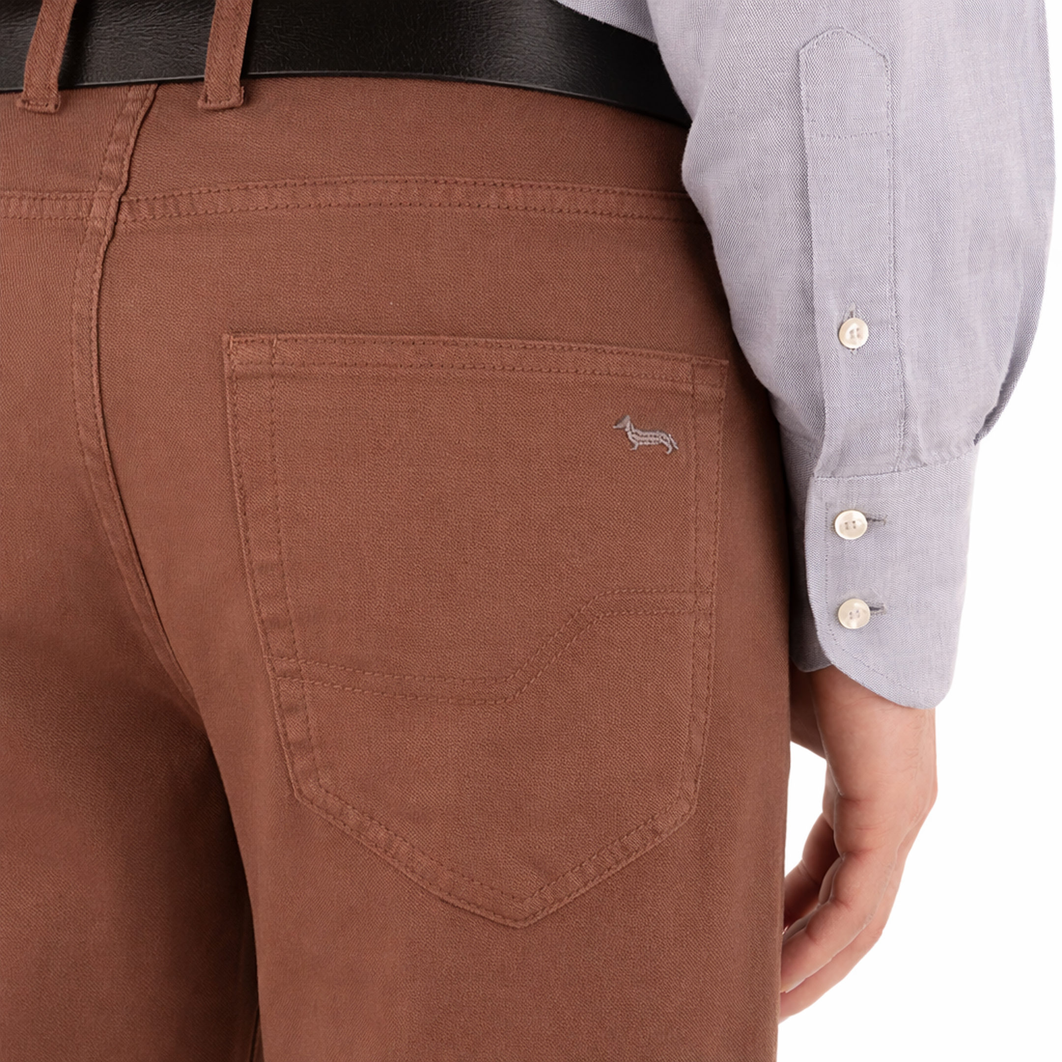 TROUSERS, FOR MEN, FIVE POCKETS, NARROW FIT, SOLID COLOUR, WITH LOGO, ZIP AND BUTTON CLOSURE