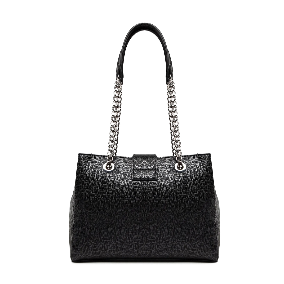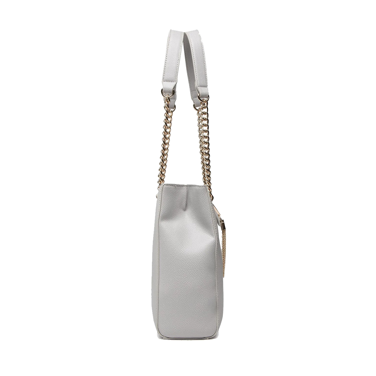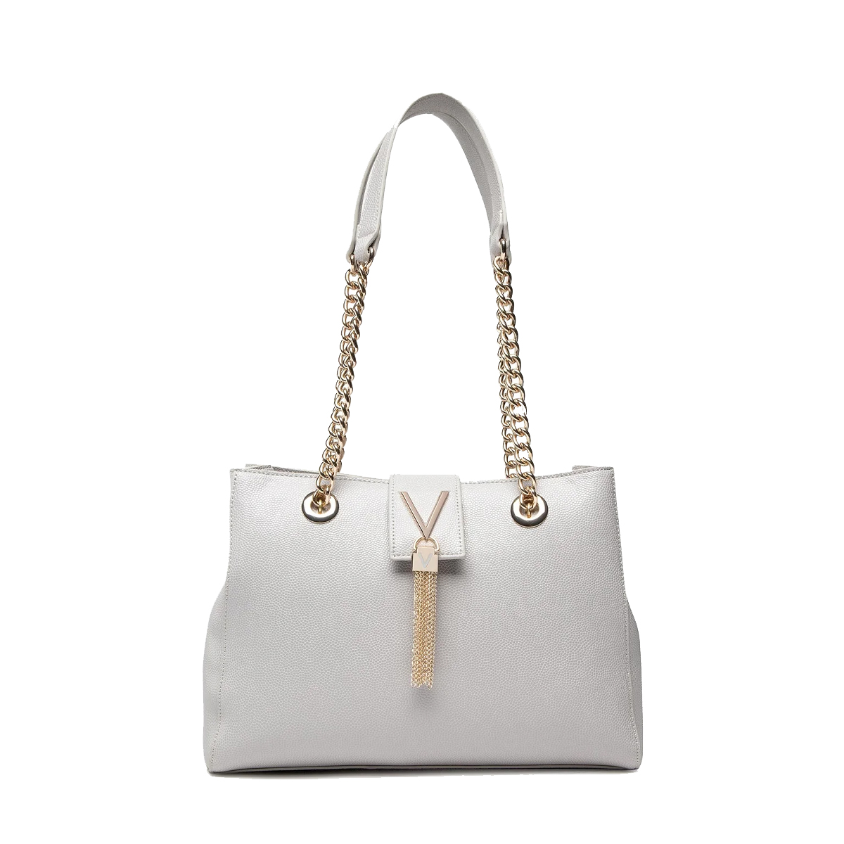 Эта сумка на плечо Divina от MARIO VALENTINO — это аксессуар с четким силуэтом и выразительной фактурой. Дизайн подчеркивается двойными ручками с металлическими цепями и центральным декоративным элементом в виде буквы V, дополненным изящной бахромой из тонких цепочек.